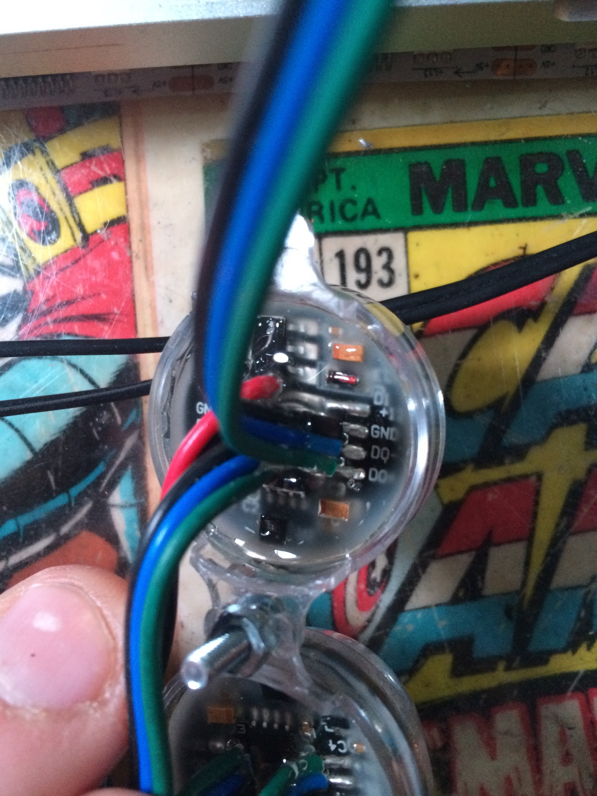 i could do with a little help here. these are ledwalker 30mm pixels, 12v. the flip side has 3 standard 5050 smd rgb leds and resistors, the photos are the flip side.