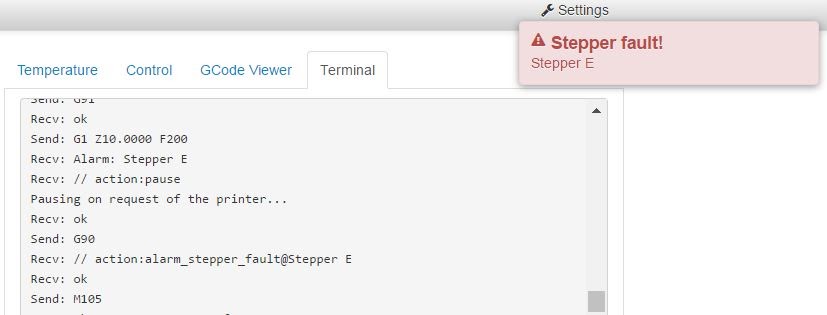 at the moment I only have 1 Nema 17 connected to stepper Z but the fault says stepper E so I’m not sure if this is motor wiring issue…