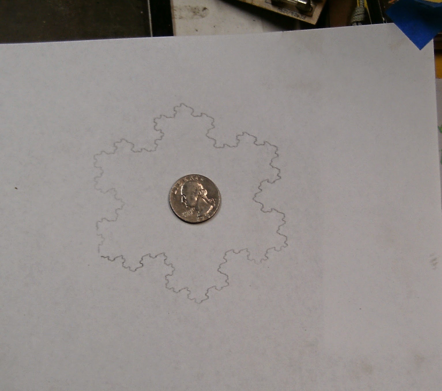 It is a fractal like a snowflake. Well, it is supposed to be. It came out pretty poor. Still better than I could draw by hand I suppose though. But I think I can get it to work better than that, much better in fact.