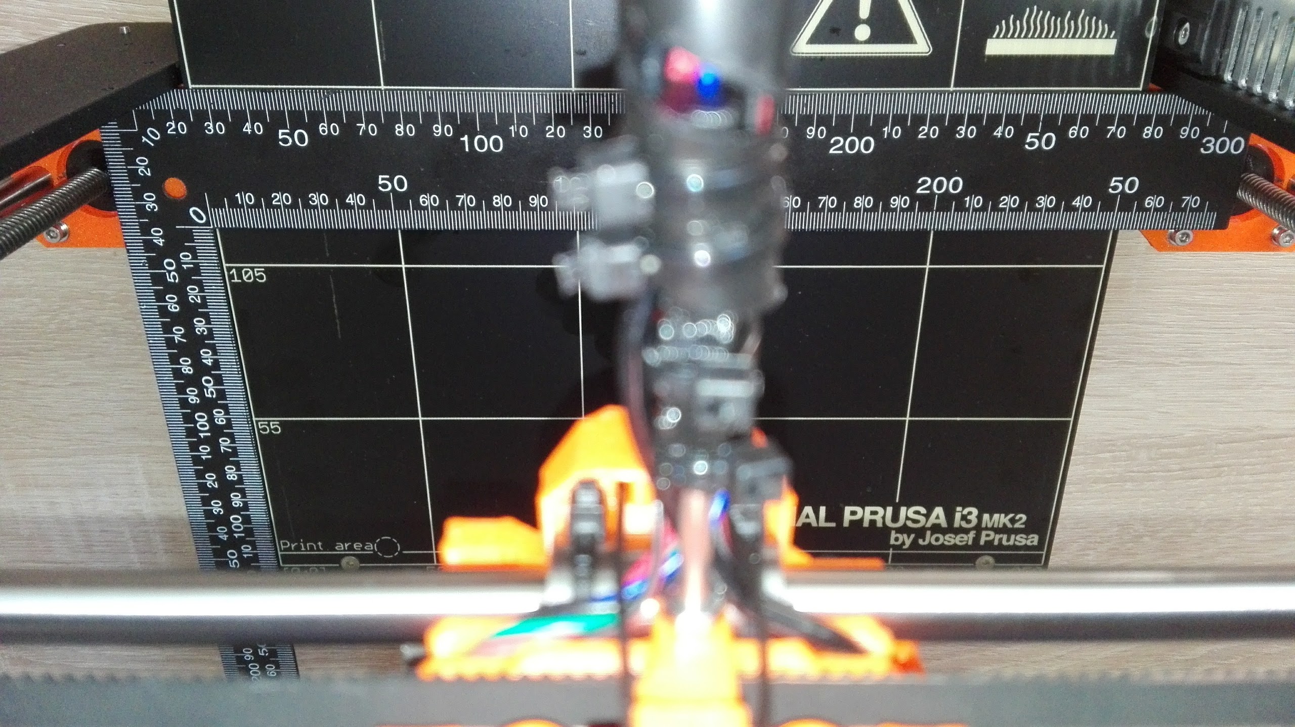 I find it pretty frustrating that it is very difficult to make small incremental changes in this kit. You have to turn the printer on its head, un-fasten the 2locking nuts on one side of the Z-Plate and the single nut on the other side, turn it minutely towards front or back, then tighten it again, turn it around, use square, check … do this until you have the Y lines on the bed parallel to Z Plate. I don’t even know how relevant this is as I need the X-Rods to be parallel with the lines on the bed.