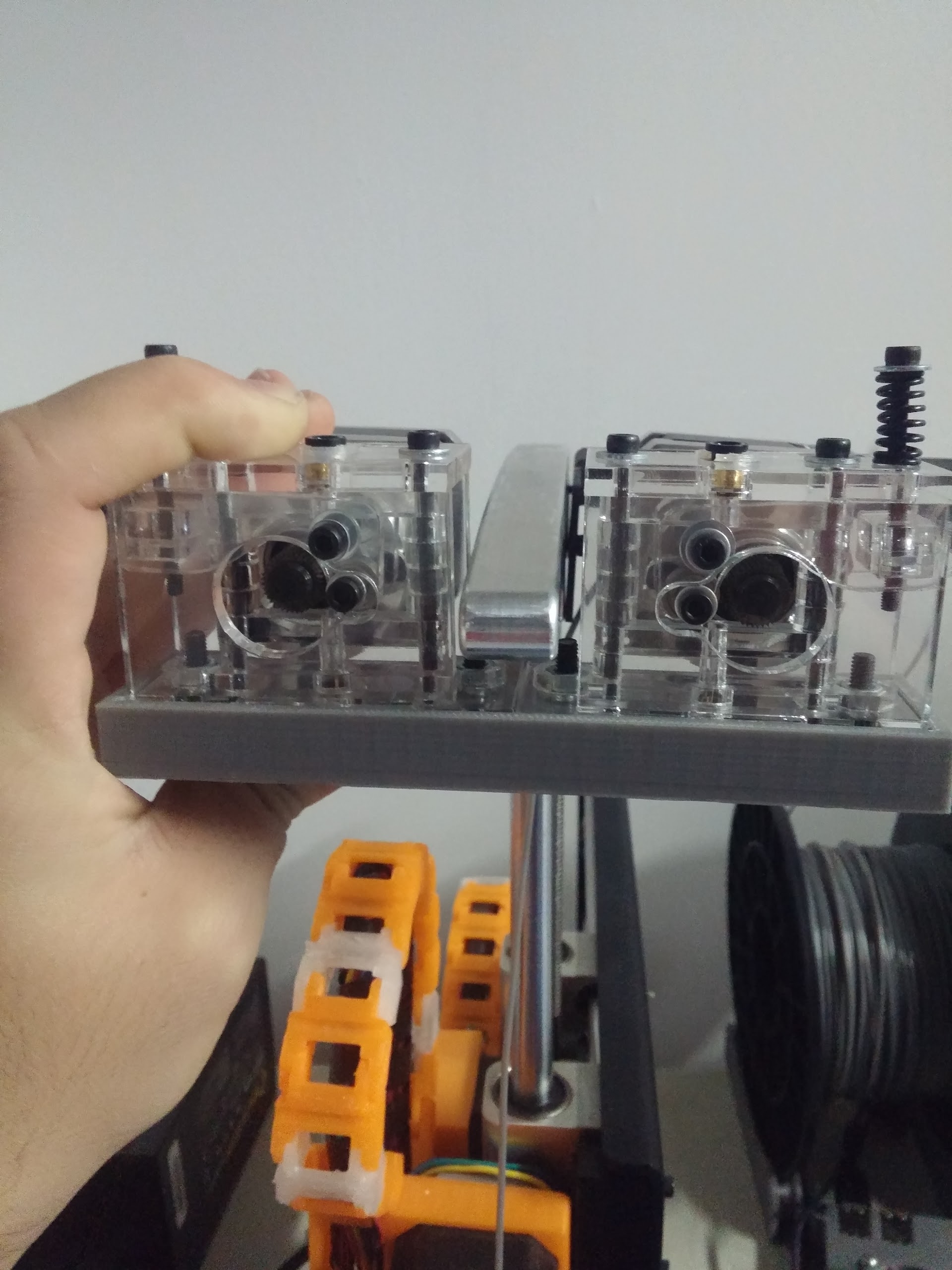 One step closer to having my Prometheuse System up and running on my Simple! Printed a lower brace today, to keep both the extruders right next to eachother.