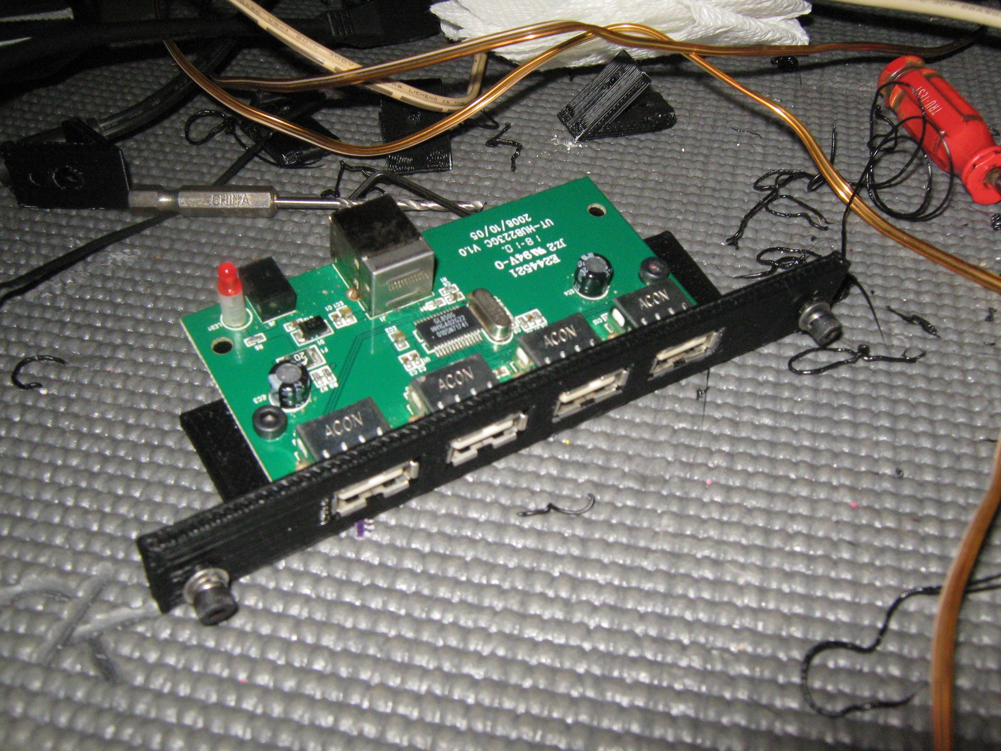 The powered hub for the pi is now powered from the ATX instead of a wall wart and it is now mounted to the case accessible from outside.