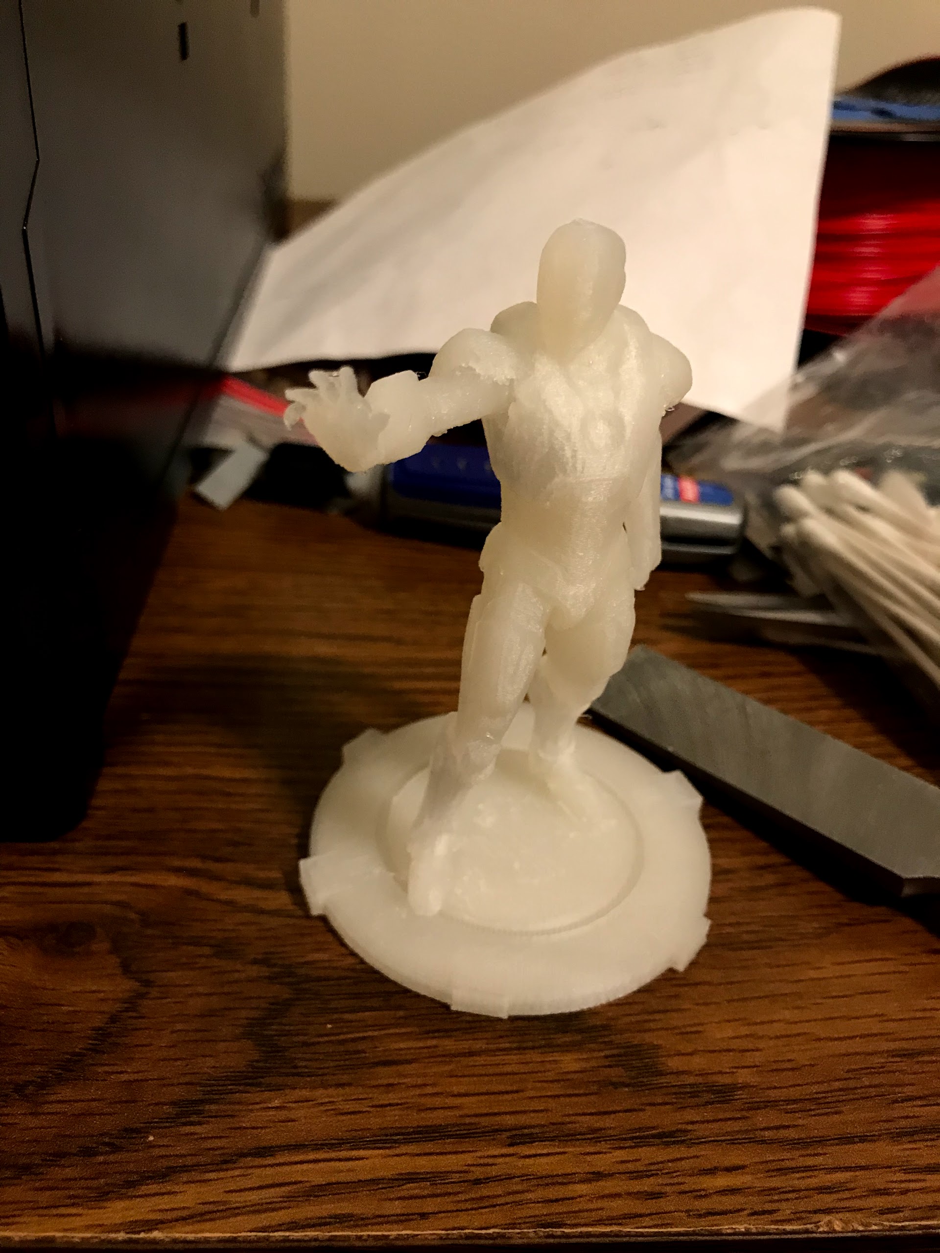 Made a small Ironman statue with my Reliabuild RB2. Turned out really well. The supports came off really cleanly and the surface finish looks great. .05mm layer height with a .4mm nozzle. https://www.thingiverse.com/thing:2573488