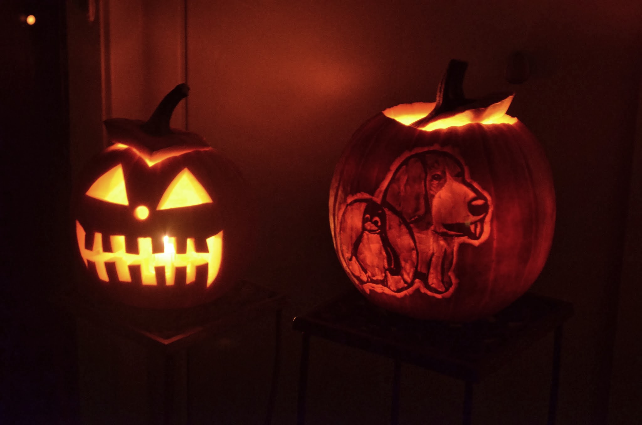 Pumpkins turned out pretty well. Too bad it has been pouring rain all day!!! @Boris_Houndleroy and Tux still looked great!