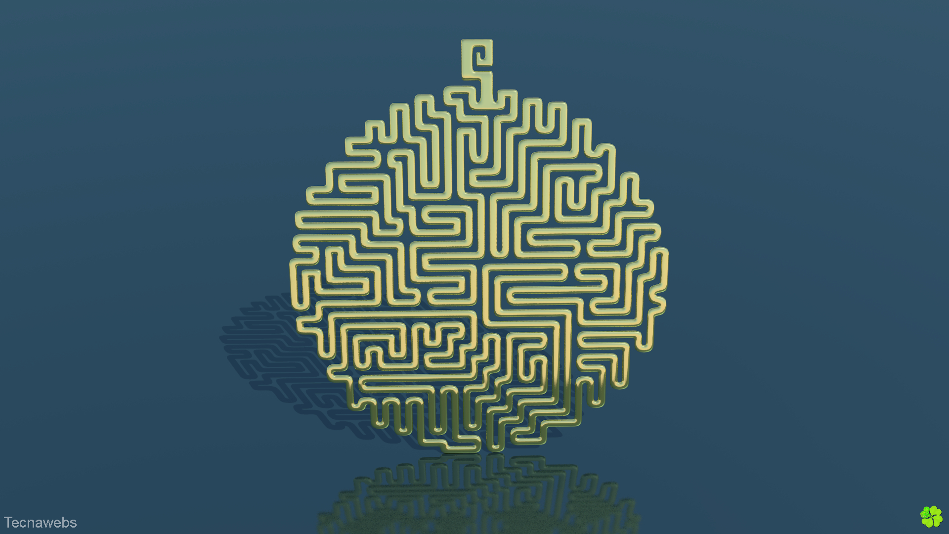 Medallón dorado con forma de laberinto.