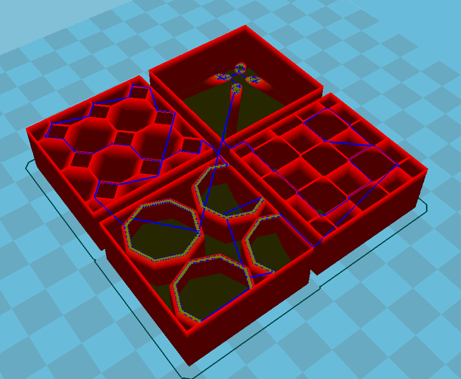 His work focuses on the the various cell tessellations available. He’s hitting some of the same problems I did in my initial testing, namely OpenSCAD doesn’t handle complex shapes very well, but he’s got so far as to create some example prints! Have a look at his thread on the RepRap Forum here: 3D Infill Algorithms, Experimenting