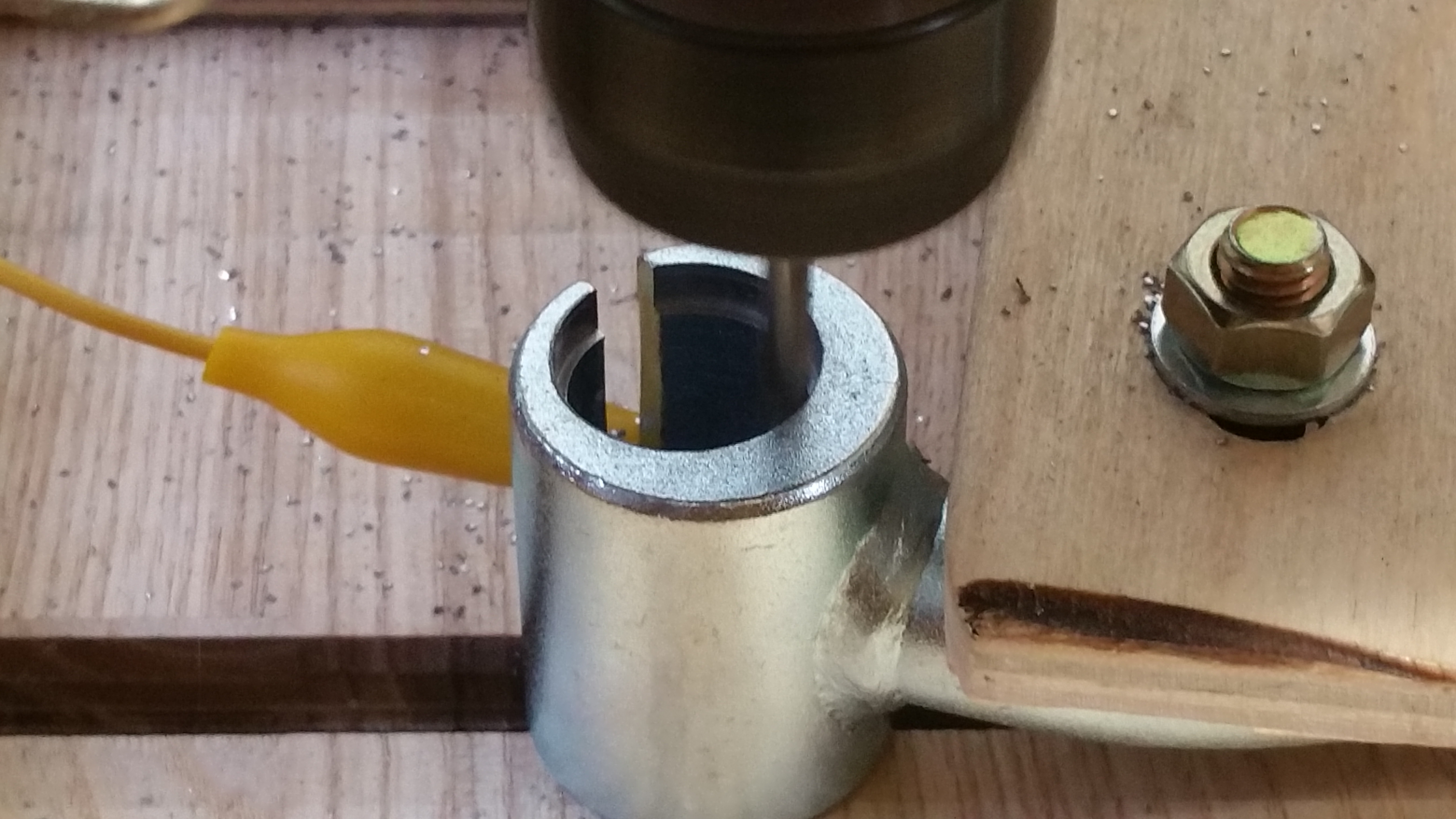 I expanded the existing hole from 1mm to 1mm taking of 1mm width and 0.5mm in depth. I had to do this from each side of the tool since the hole is deeper than any of the milling tools i have available currently.