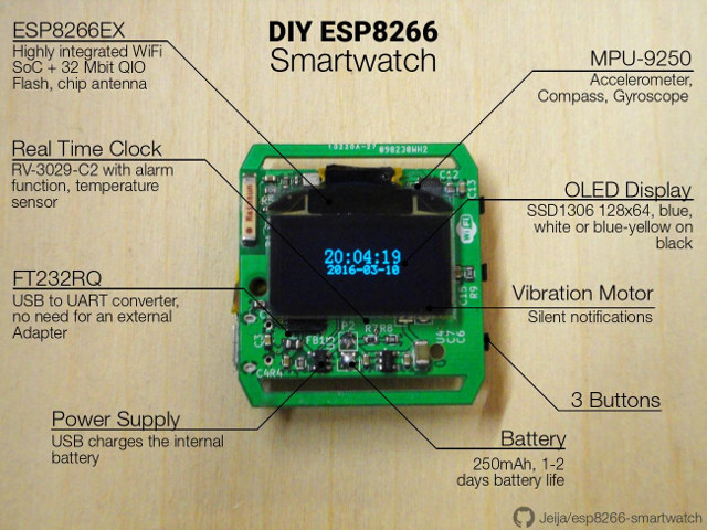 @ESP82663 smartwatch designed with @KiCad . The developer also posted a video showing how to build the watch (soldering + testing).