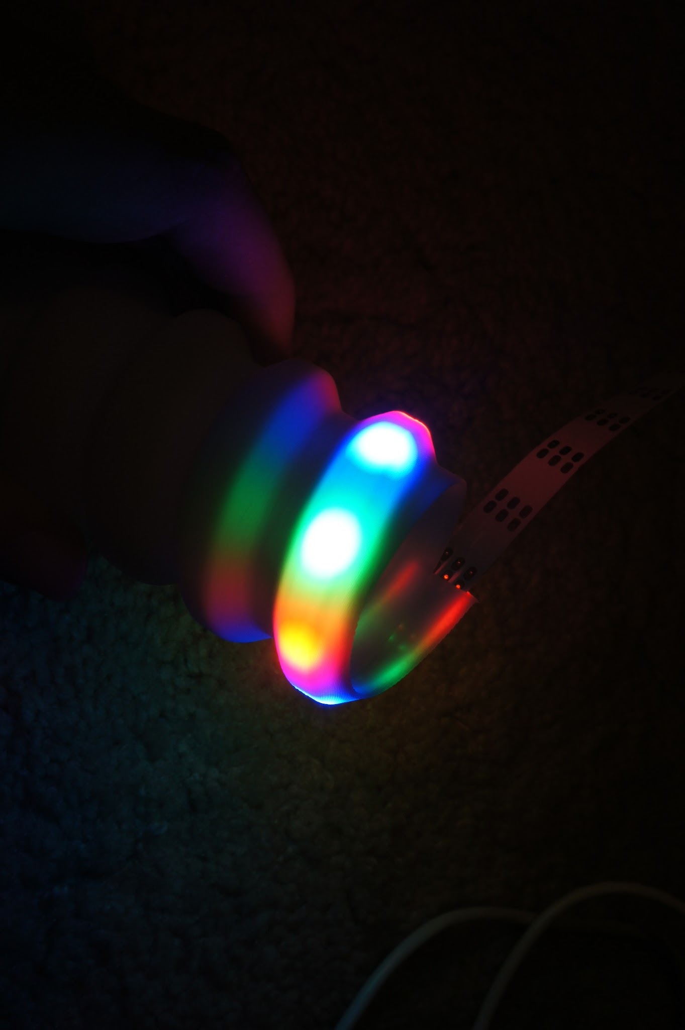 Yesterday I put my printer platform on heat without realizing that I actually didn’t have anything to print… so I had to quickly knock up a ‘spiral’ lamp where I could slide in some addressable LED strip. Didn’t quite work out as it was too tight a fit, managed to only pass in 7 LEDs out of 30 before it got stuck. The diffusion isn’t bad but could be better if I put the LED’s back a bit more. Oh well, not bad for 10 min CAD effort ![]()