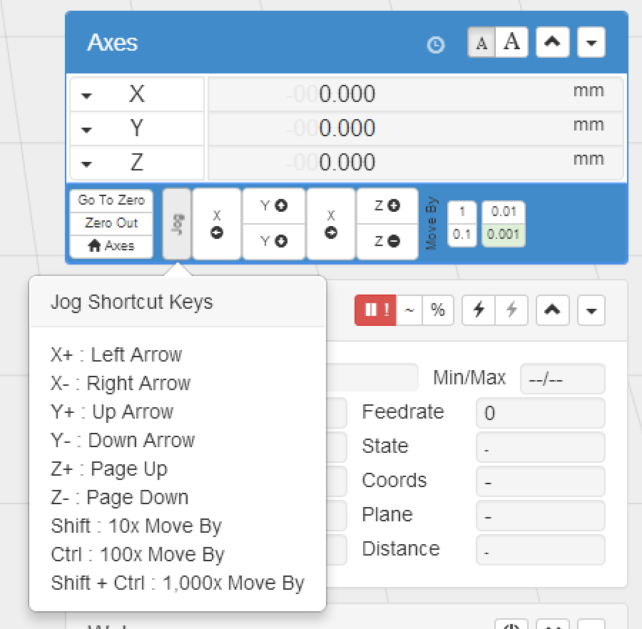 Holding down Shift, Ctrl, or Shift+Ctrl quickly switches the jogging Move By from 10x to 100x to 1000x. So…pick 0.001 and then jump increments via your keyboard quickly.