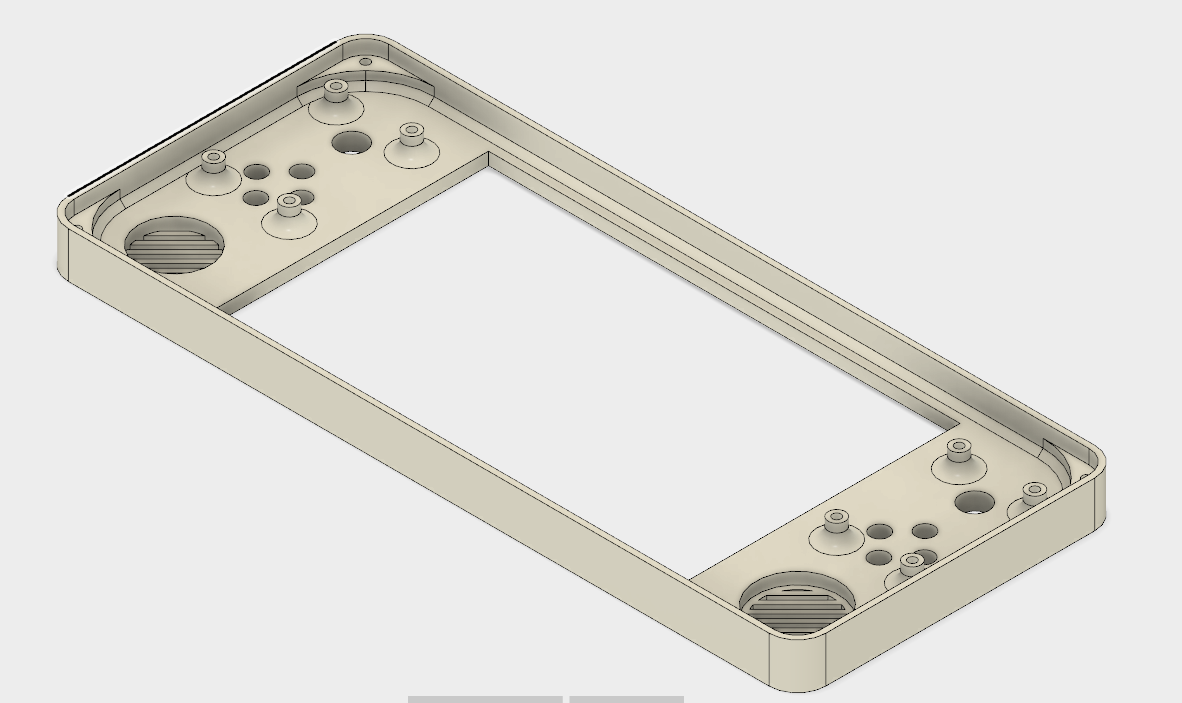 Hi everyone! I’ve been designing the top case of my portable game system, integrating the new button pad board and two holes for tiny speakers. Here are some pictures of it.