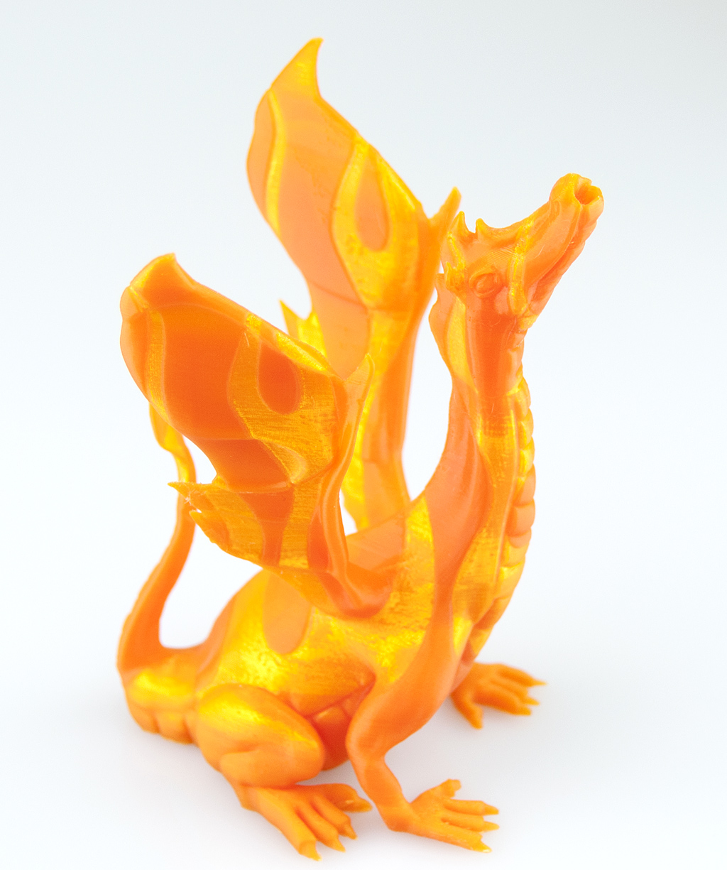Interestingly, the flames (so the shinier, lighter orange areas caused by printing slowly) are noticeably thinner-walled – i.e. you can easily feel them as an indentation.