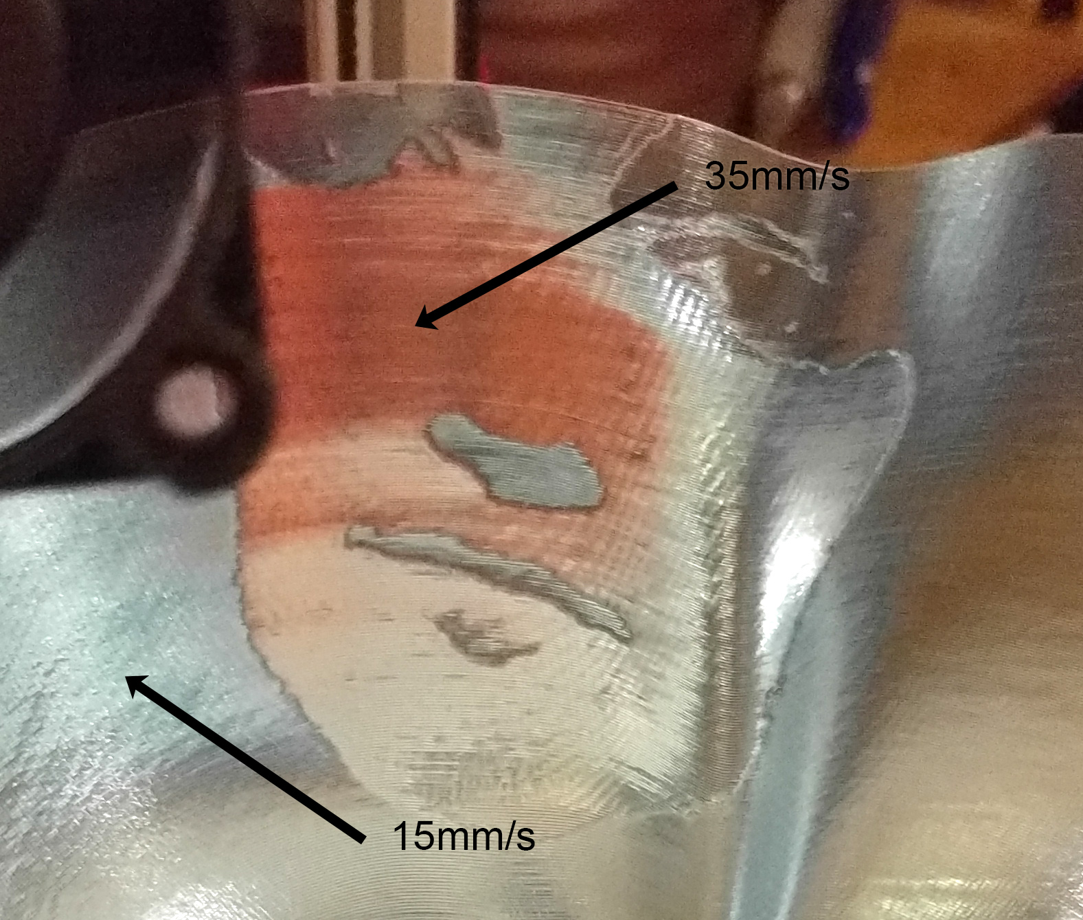 Do the fast sections seem under-extruded / have narrower extrusion width or is the surface still flat?