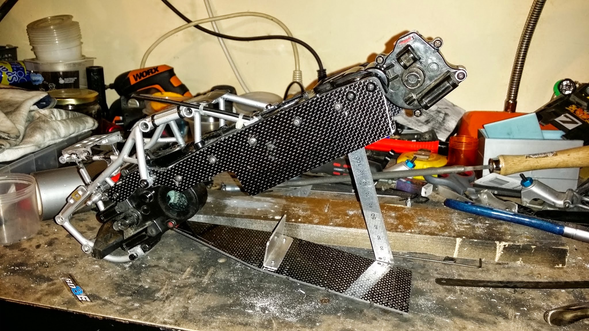 After many hours at the work bench finally the HOTSHOT conversion is complete. Converted the chassis to carbon fibre this has increased ground clearance, it’s about 200 grams lighter than my previous attempt and it looks much better to. Don’t know if there is any improvement in handling as it is pissing down with rain and will be for a couple of days we actually have been given a flood warning for the area I am on high ground but I feel for some of the people around here as they are in low areas they should be ok. Anyway I am glad that is finished I can start my next project now hope you like what I have done to the hotshot please share your thoughts.