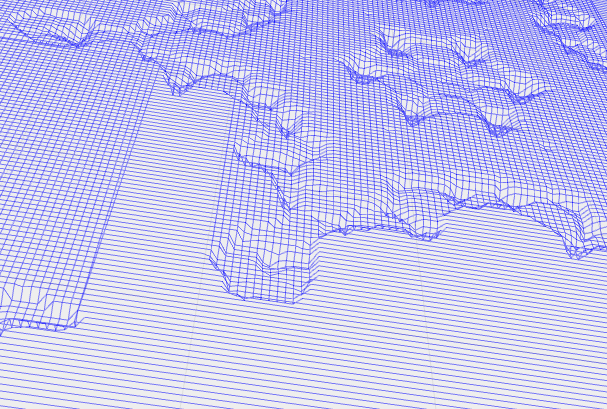 This is what a “final” mode cut looks like up close. There are things to the right and the left, so the X lines go all the way across, but there is nothing in a lower Y position to cut, so it stops the movement on the end. It also does a diagonal line between the neighboring dots when it gets to the end of the cutting row.
