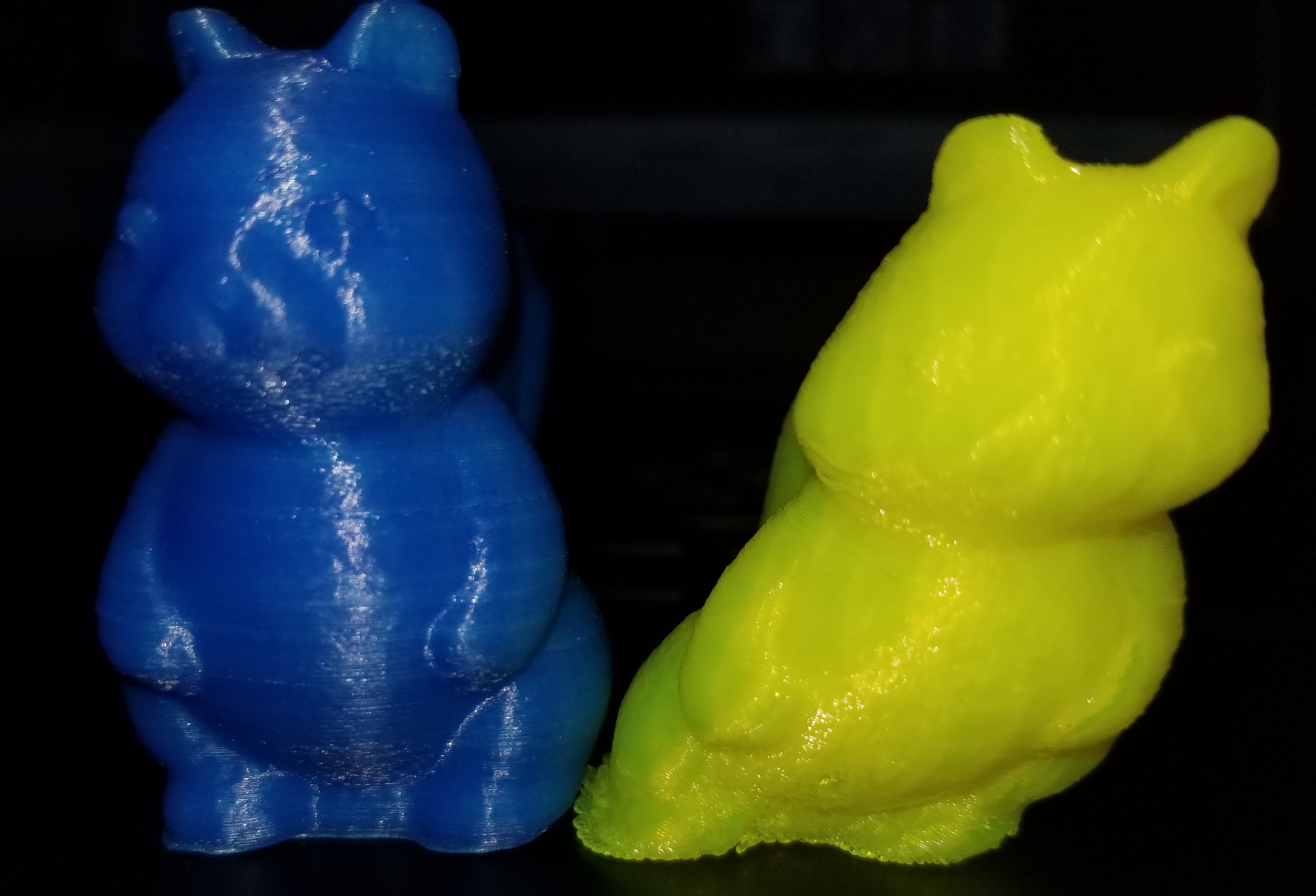 Reference print on the left. First sliced Tablebot print to the right. Not sure if the problem is calibration or kinematics. Either way we are changing the arm design. The tool chain has been proven and the surface quality is good.