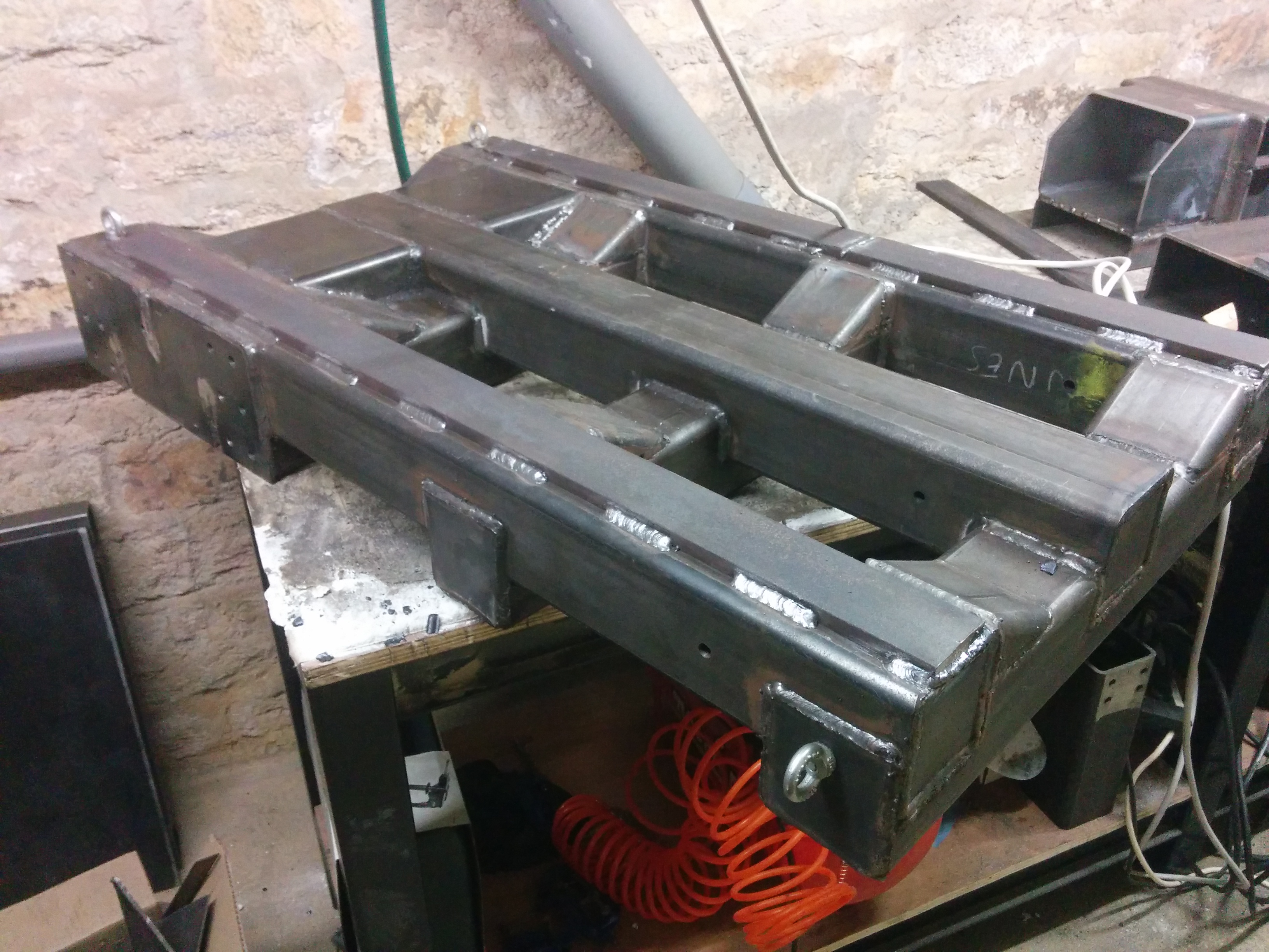 Welded up the 12mm steel steel plates on the base, gantry head and the bottom one on the gantry, these will be skimmed to give a perfectly flat surface, got the eyelets mounted just in time as this is becoming almost impossible to lift with two people! Can’t wait to have this baby running!! Stay tuned!