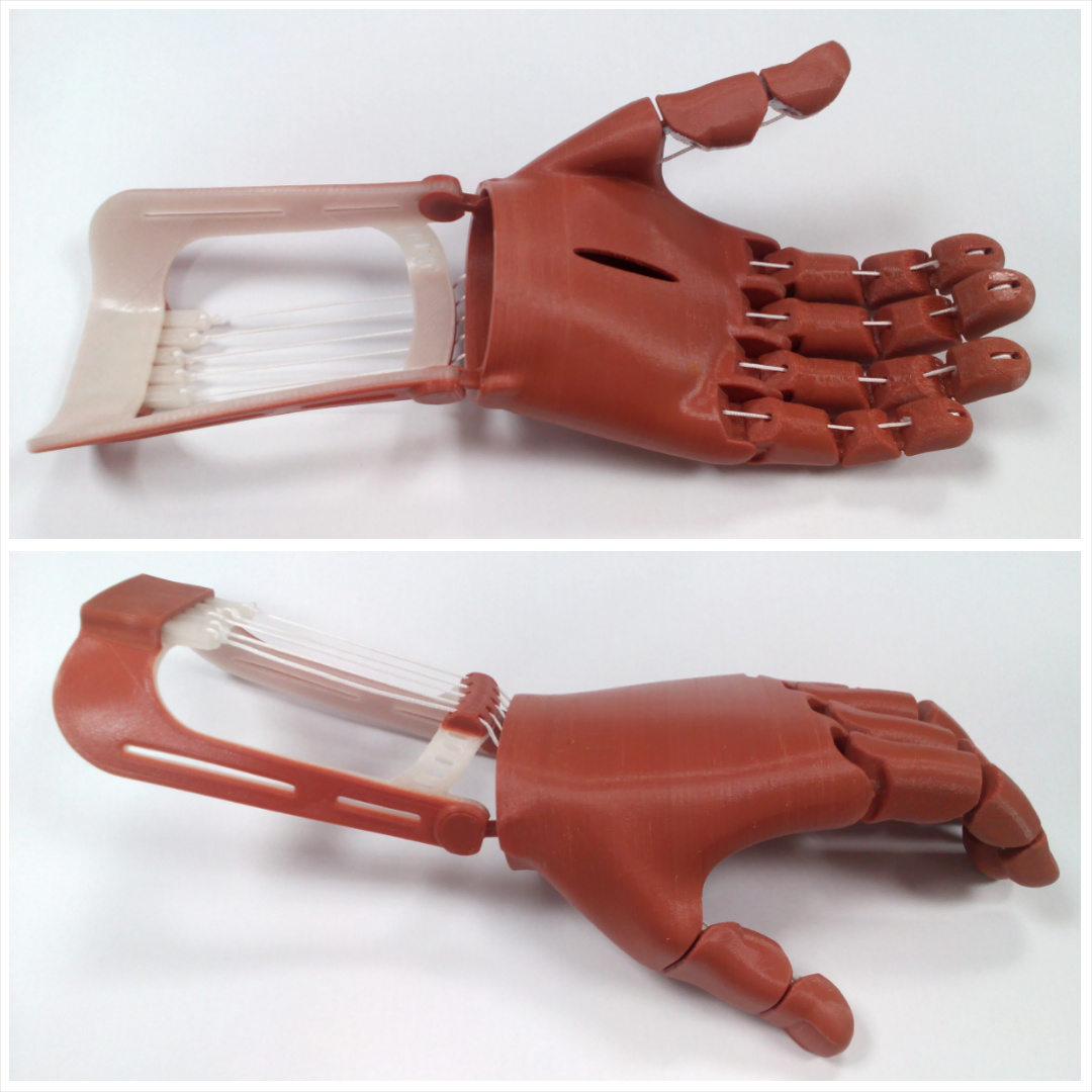 A Flexy-Hand 2 - Filaflex Remix printed for the 2015 London 3D Printshow medical conference.