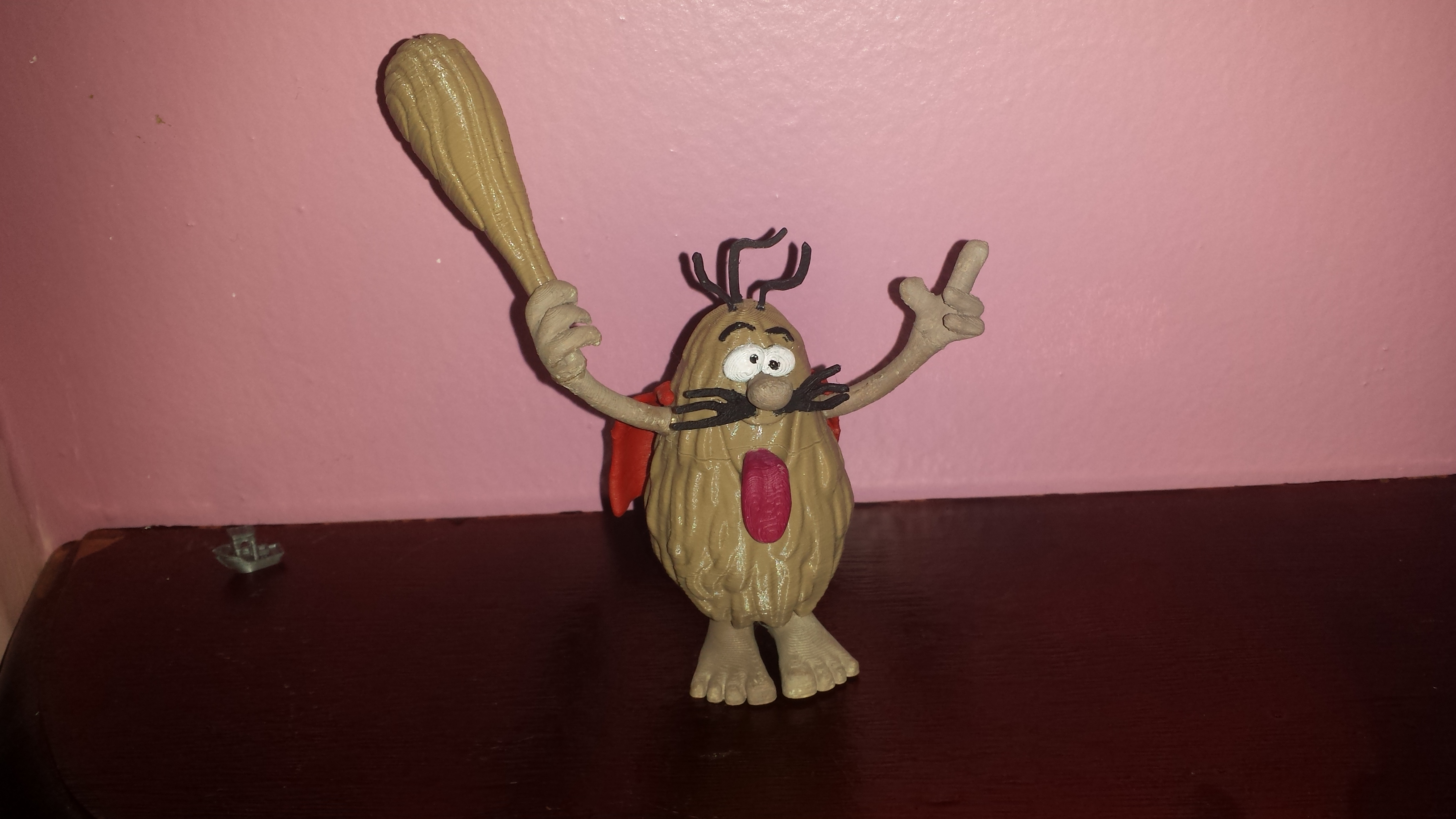 Out of the 200g roll of filament i used to print baby groot and a scaled down baby groot i had some left over filament i just could not find an use for. Finally put that to good use and ended with 7 inches of filament left lol. Captain caveman, my mother used to love this show when i was little