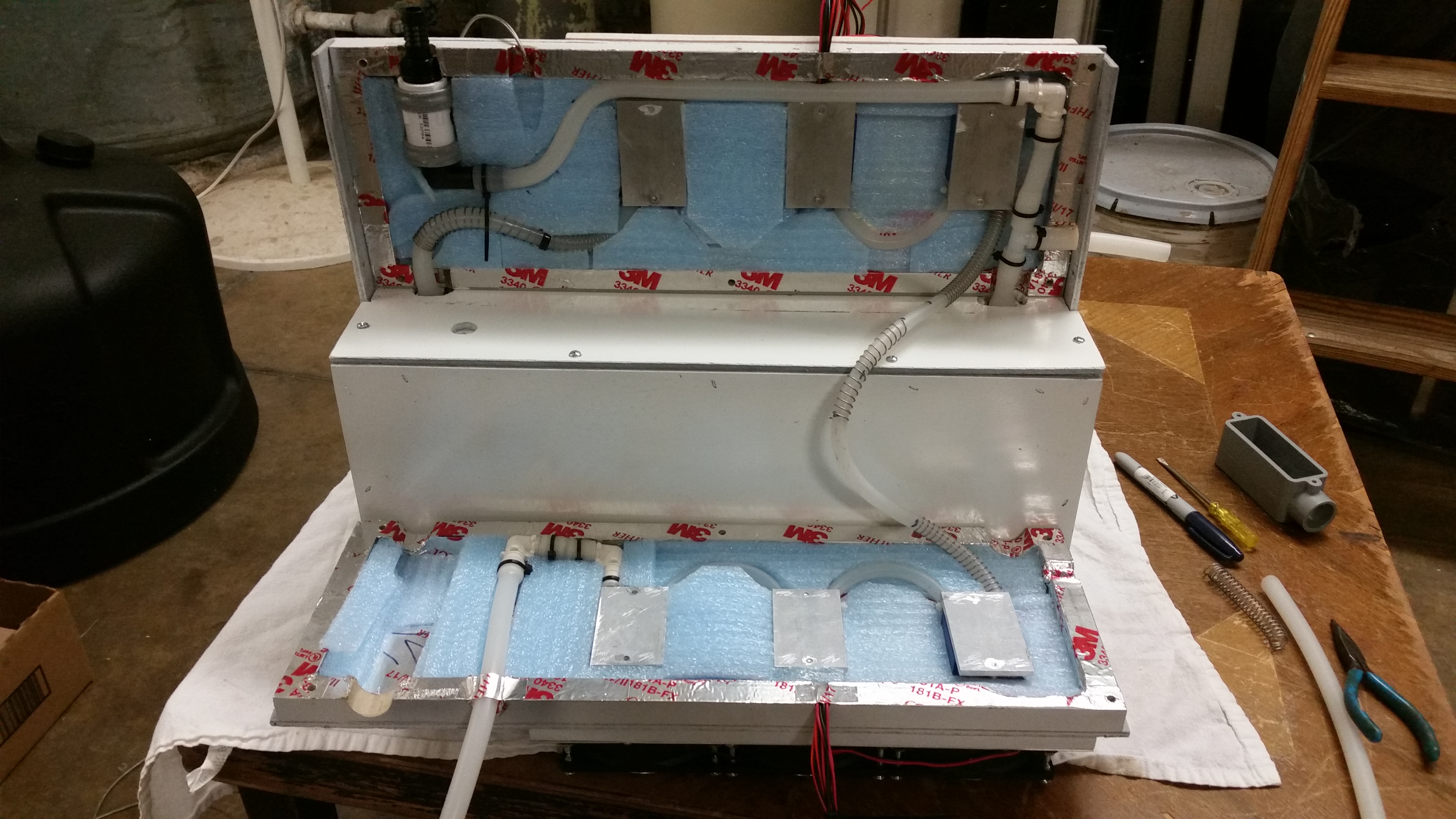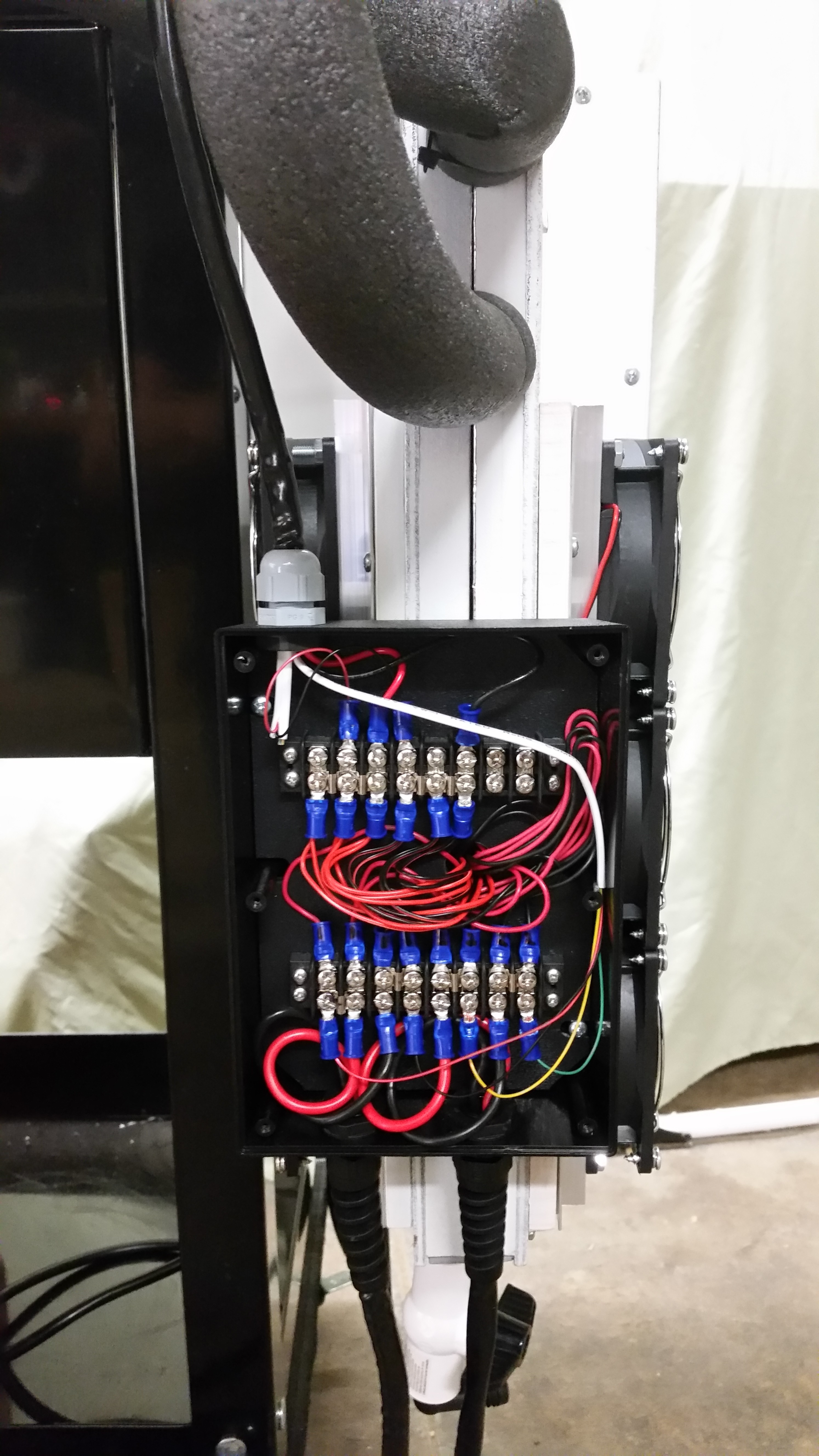 Each Peltier bank has its own 30 amp power supply and each has a line fuse of 20 amp on the 12 volt side. The power going to the Peltiers is of course turned on and off by the Temp Controller and through solid state relays for each bank.