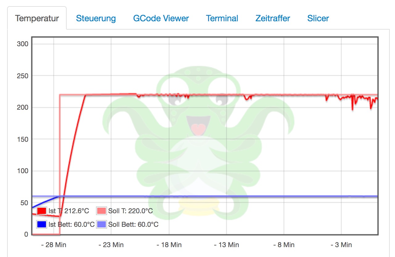 Marlin3DprinterTool has a “one-button” solution for AutoTune of PID. The graph of the temperature is scaled to be ± 20C on the current temp. It should be visible if there is somthing wrong with the thermistor connection and/ör heter cartridge.