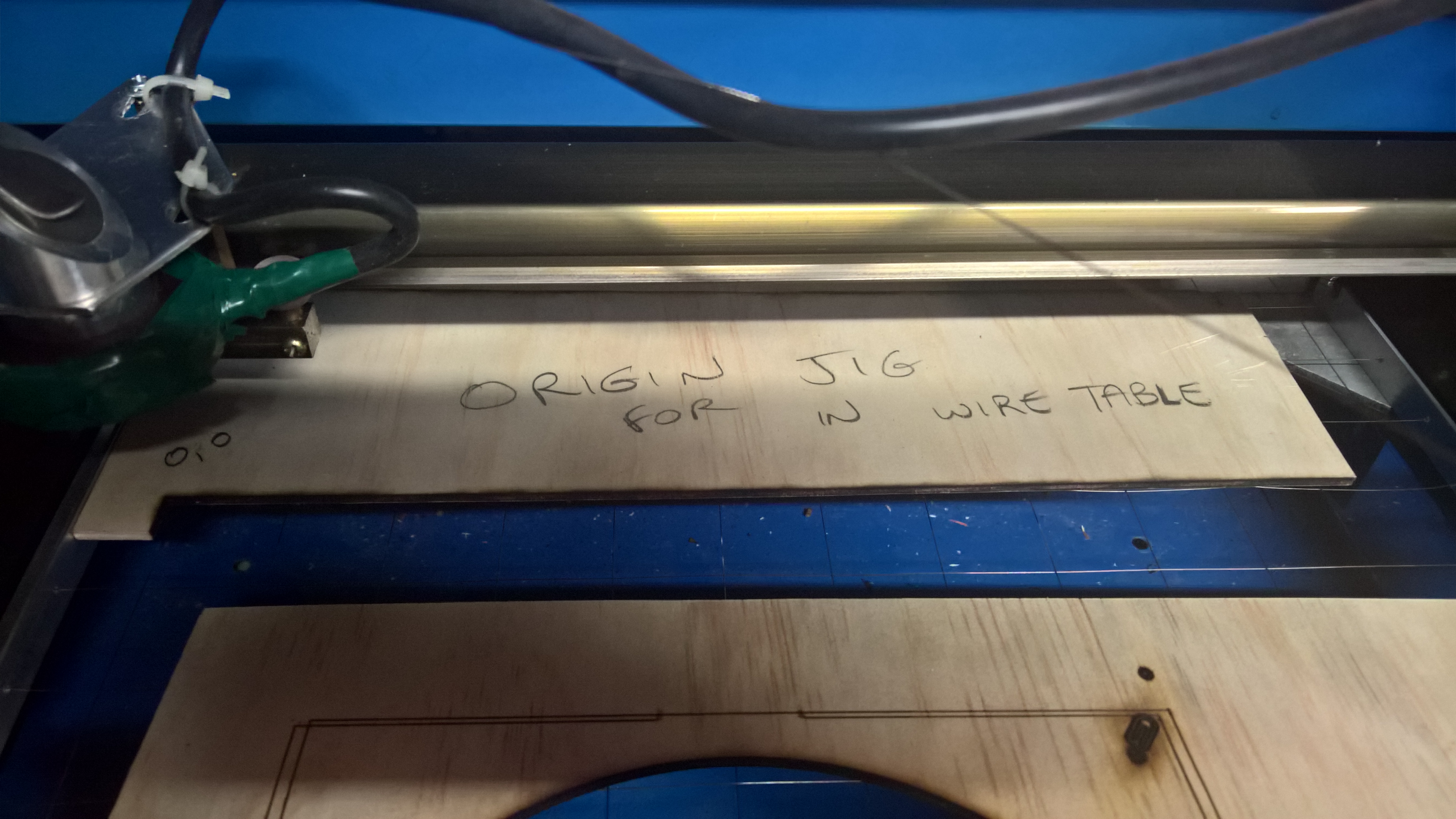 @Pigeon_FX Here is the pics I promised the other day regarding jigs to get your registration points. As far as I’m aware, it shouldn’t matter if you raise or lower the cutting bed (provided your beam is coming down perpendicular to the cutting bed). Each photo has individual comments. So, the main jig sits in place permanently, to always give your 0,0 origin point. Then you use secondary job-specific jigs to butt up to that origin point to give you your job-piece position. I would write the X-refer & Y-refer points onto that jig, so you know how far from origin (0,0) that you need to start the job, e.g. X: 25, Y: 25. Then whenever you cut/engrave it should always hit the spot that your job-piece is positioned in.