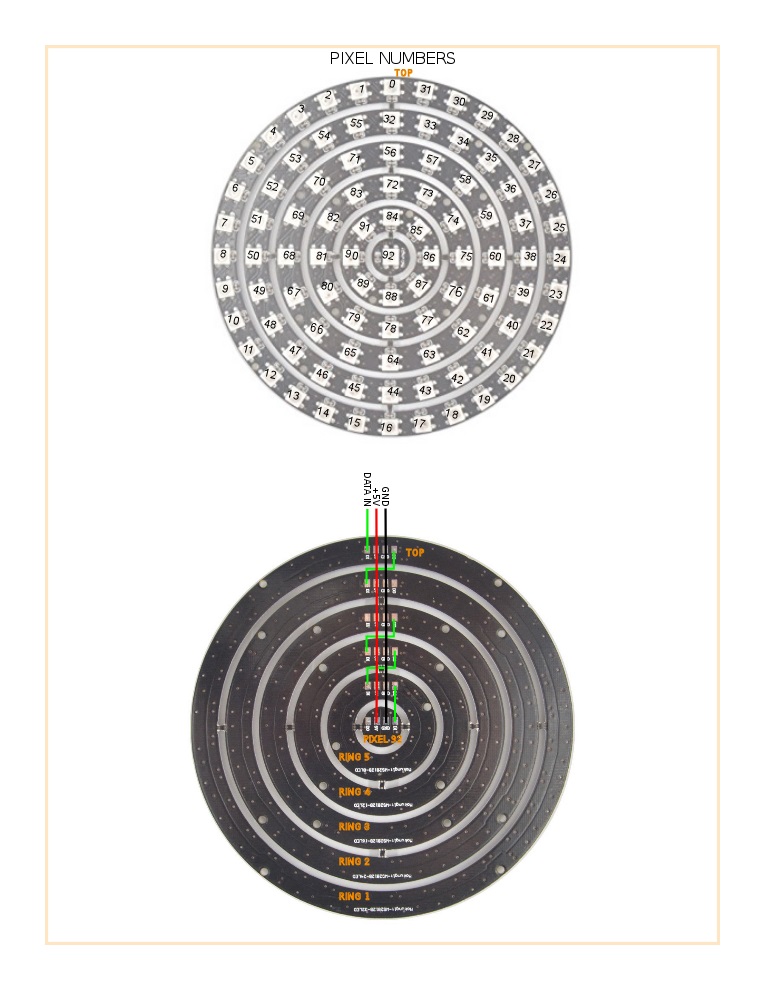 This is the pixel map for the Mokungit 93 Leds WS2812B 5050 RGB LED Ring Lamp Light with Integrated Drivers