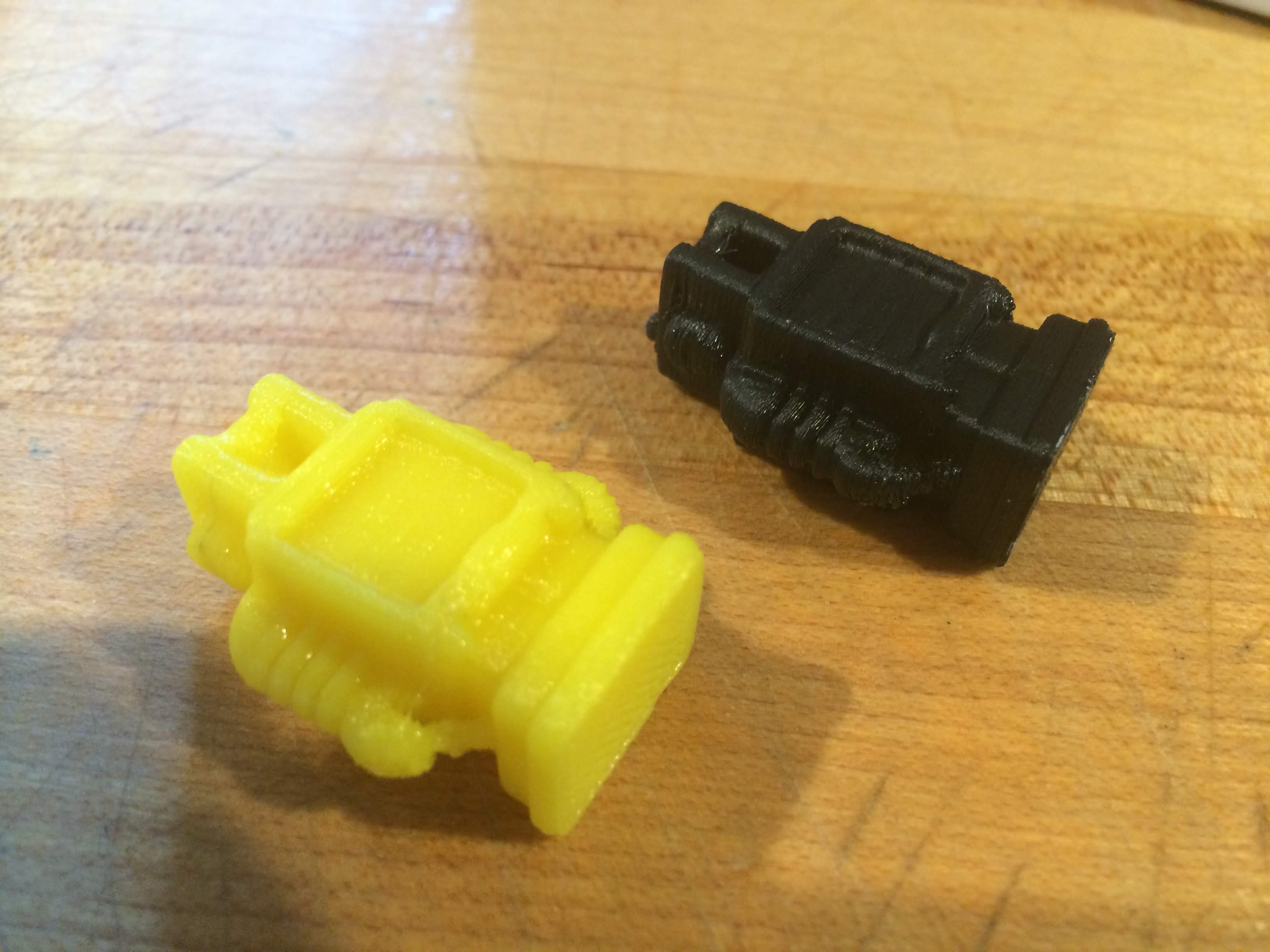 Wife says the Abs feels better from a surface texture… They’re small enough that strength and weight are hard to tell apart. Support structure seems to come off a LOT easier on ABS, and there’s just the slightest bit of warp on the abs.