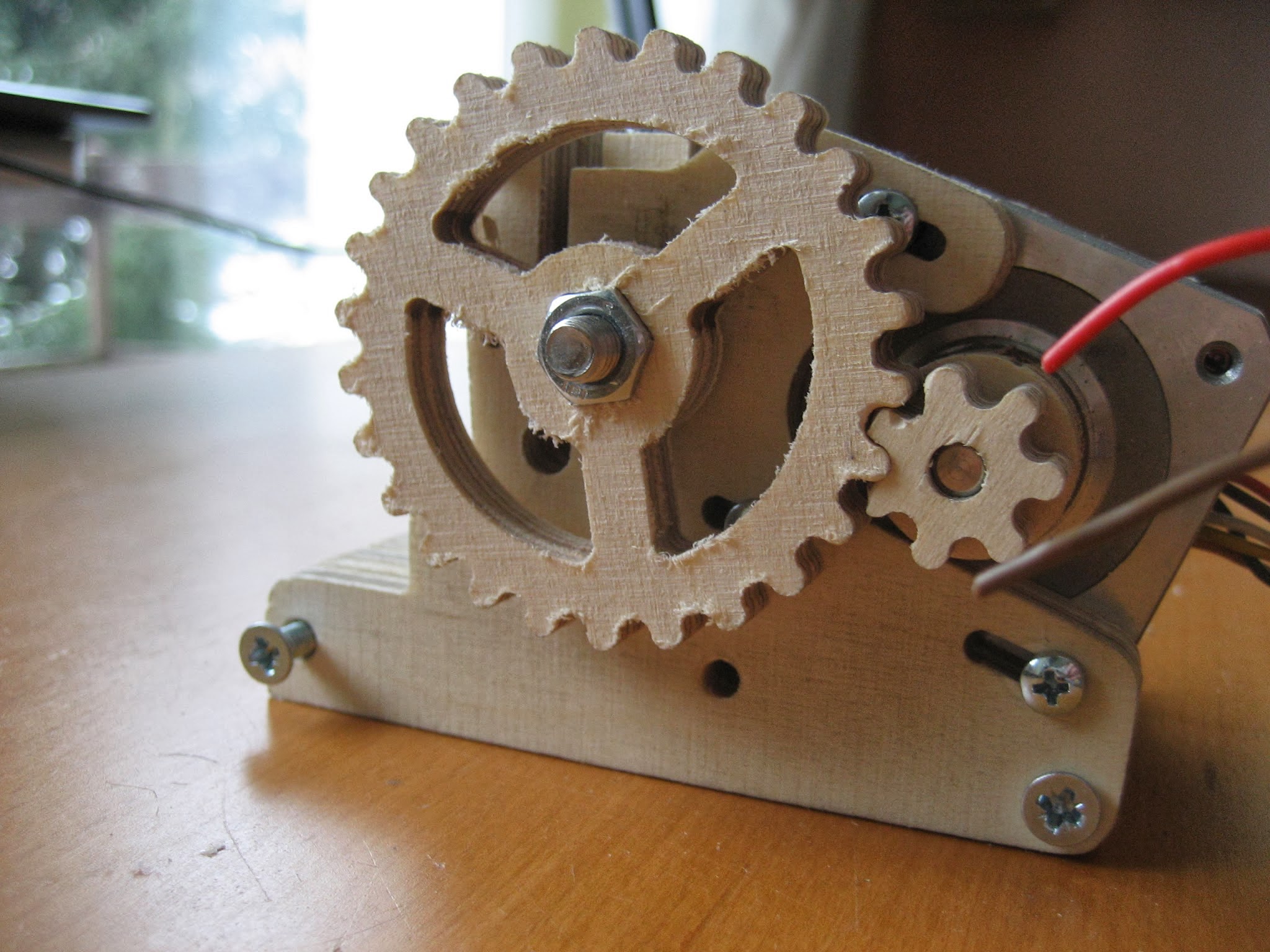 looks nice, only downside is the wood will end up with a groove and the filament will be slipping relatively quickly. Might want to make sure the part holding the filament is a bit more durable than the rest