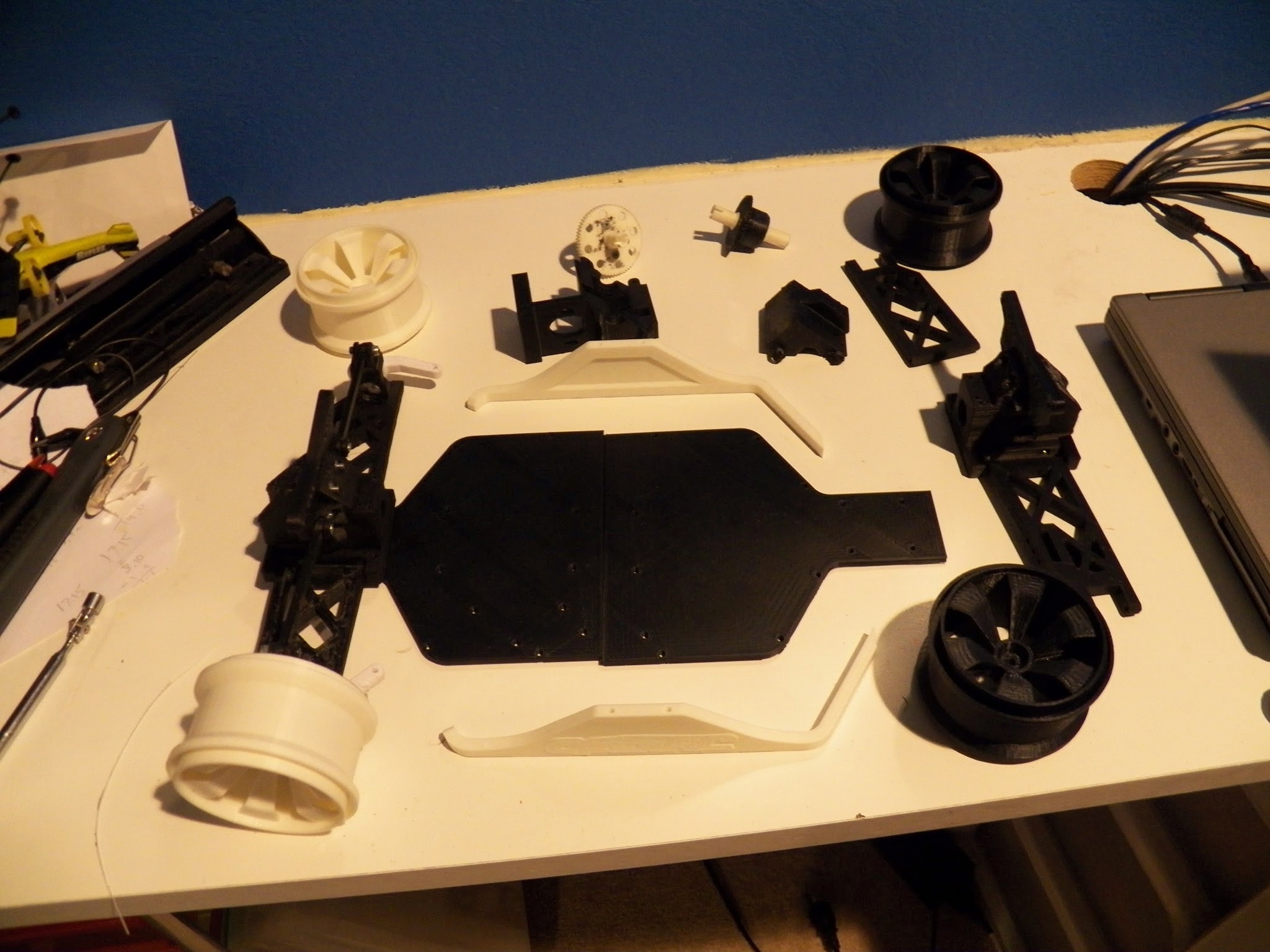 Printed and working openrc. I saw this on thingiverse and thought it was a cool idea. I printed the parts with abs using a Makerbot thing-o-matic and a Makerbot replicator 2. I used some old RC parts I had, and made the dogbones from 3.5mm brass rods. I love the look of this truggy. I think Daniel did a great job designing it, thanks for all the hard work.