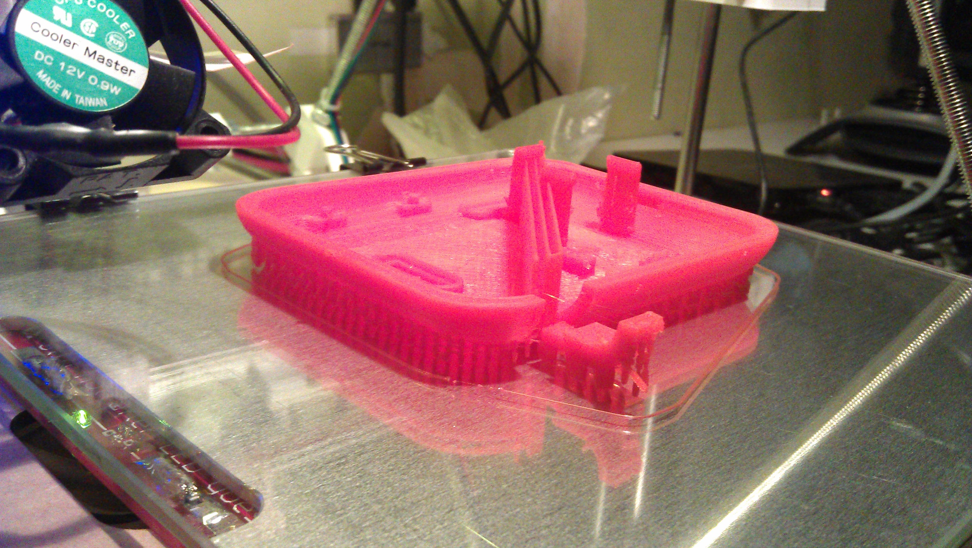 Printed, for the first time, an object that needed support, http://www.thingiverse.com/thing:32063. Just can’t figure out what that massive support on top is suppose to support.