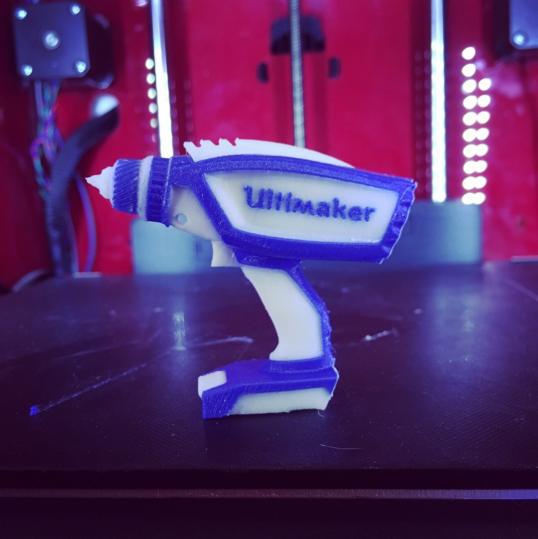 Printed the ultimaker drill in a diy dual extrusion ultimaker 2 with ooz shield. Bc lack of time I have to scale down the model to 40% or so. Sliced in cura 3.0.3 with .15 layer height,1.75 filaments and two nozzle setup. The overall quality was satisfied^_^