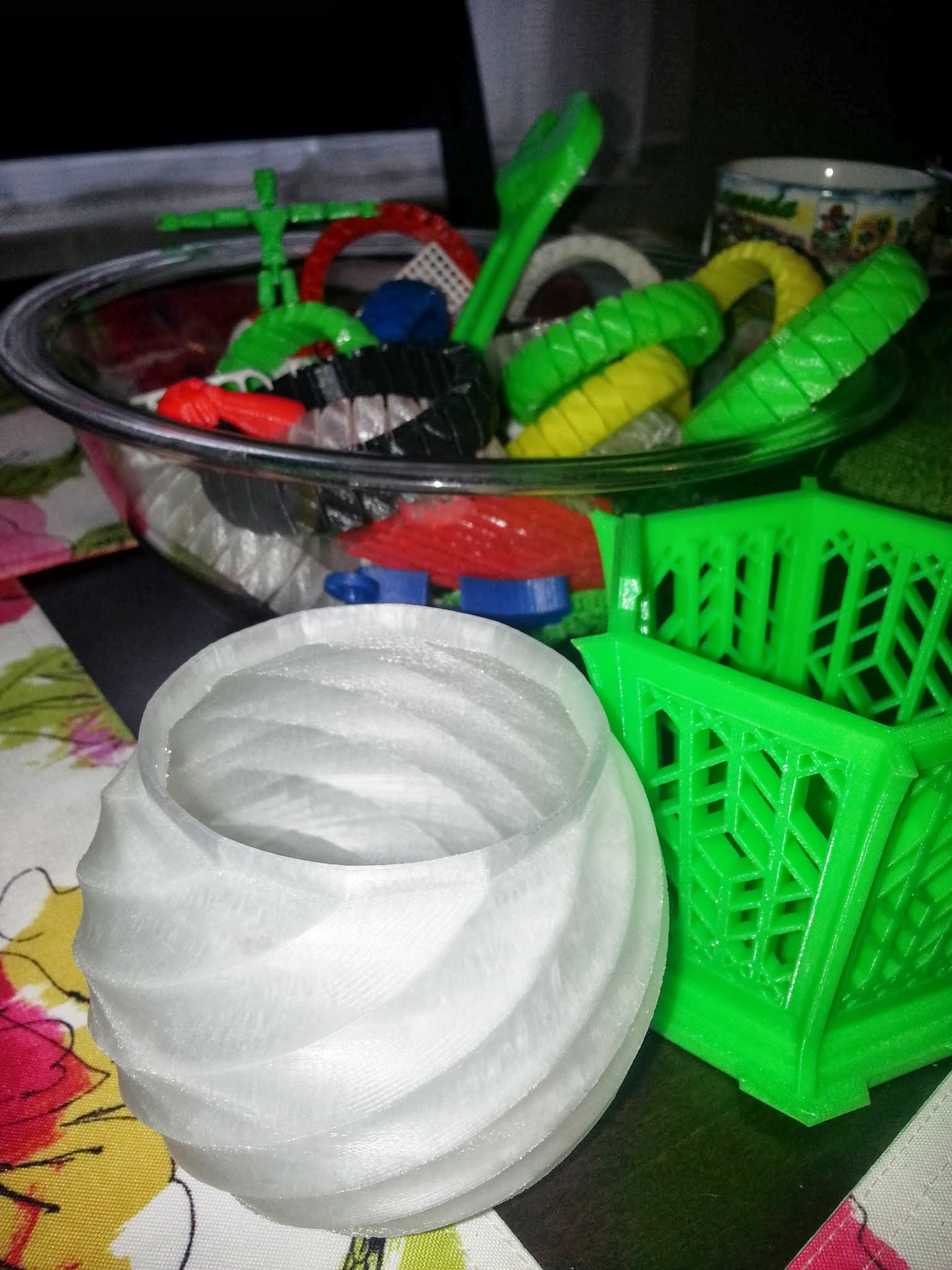 Those are ABS, I just started printing with PLA tonight. I’ve been using the bowl of prints as a goody bag for family and friends