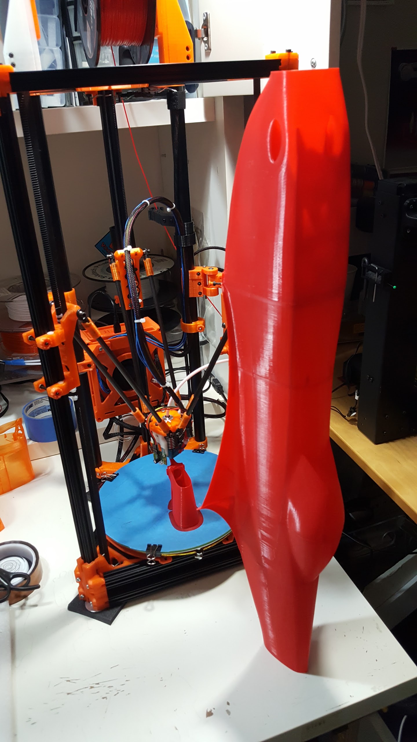 Printing the 3dLabs Spitfire, going well once I switched from PETG to PLA. Need to get some XT or PLA/PHA or NGen for this though, the mid range Hatchbox stuff is too brittle it will delaminate in a crash I am pretty sure.