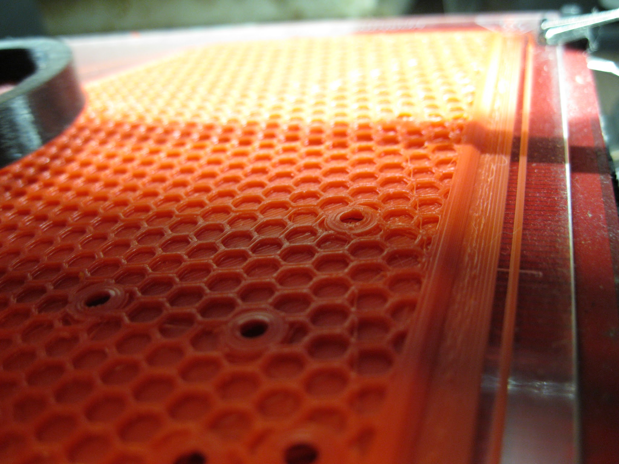Printing the front plate in 'red' ABS at 25% honeycomb infill. Looks cool.