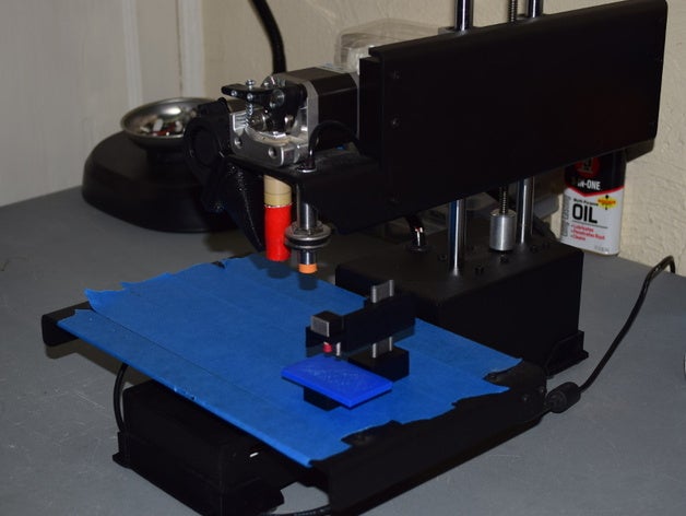 The PrintrBot Mini is a roughly 1/5th scale replica of the original, down to the hotend sock and autolevel probe. I didn’t bother to do details on the extruder or fan since I figured they would get lost at this scale, but I think overall the effect works. The arm even freely moves on the Z axis!