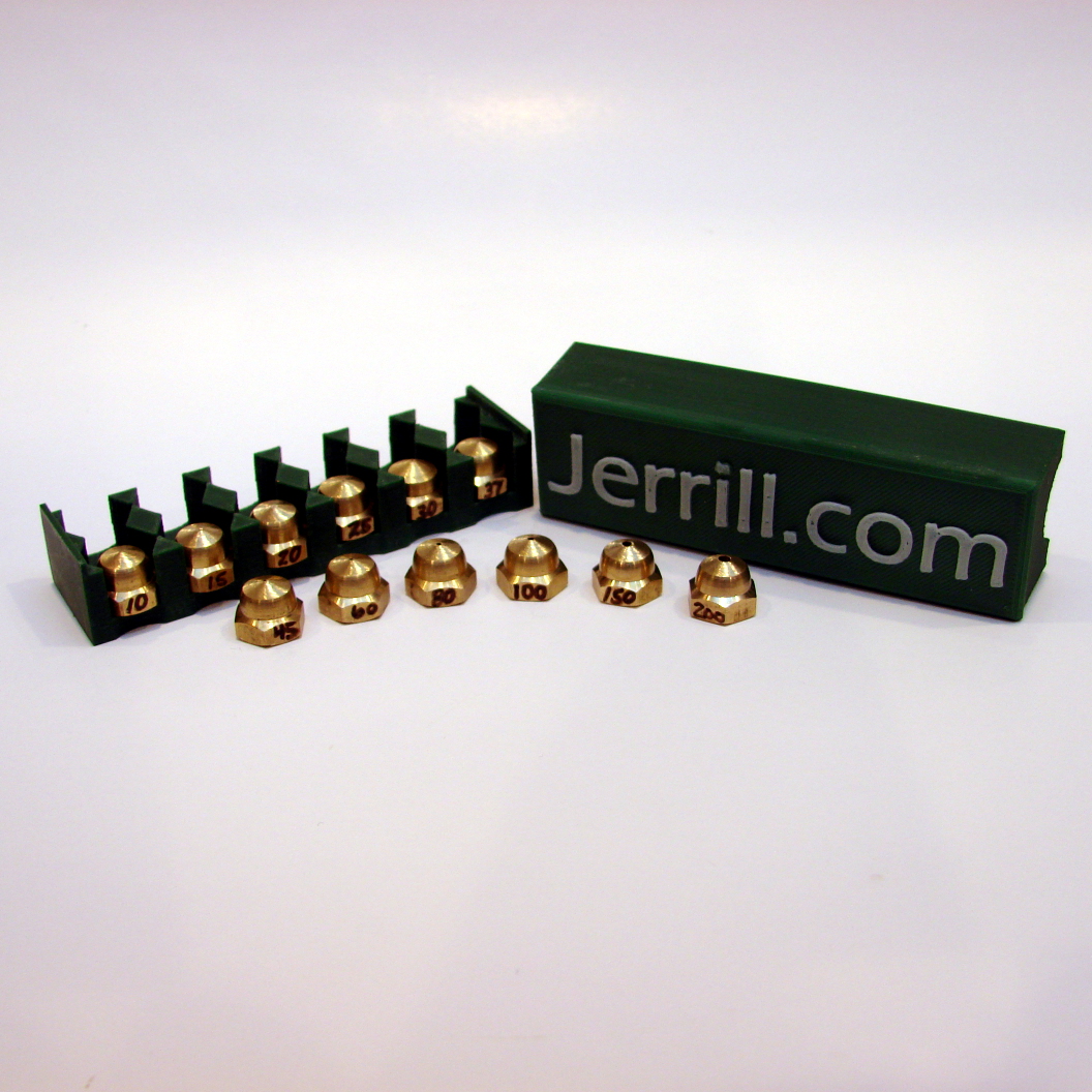Printrbot nozzles for the serious experimenter! 0.10 mm (EXPERIMENTAL), 0.15 mm, 0.20 mm, 0.25 mm, 0.30 mm, 0.37 mm, 0.45 mm, 0.60 mm, 0.80 mm, 1.00 mm, 1.50 mm, 2.00 mm sizes included with a custom case. What does this community think? What other printers are in need of this sort of thing? Be specific with model numbers!
