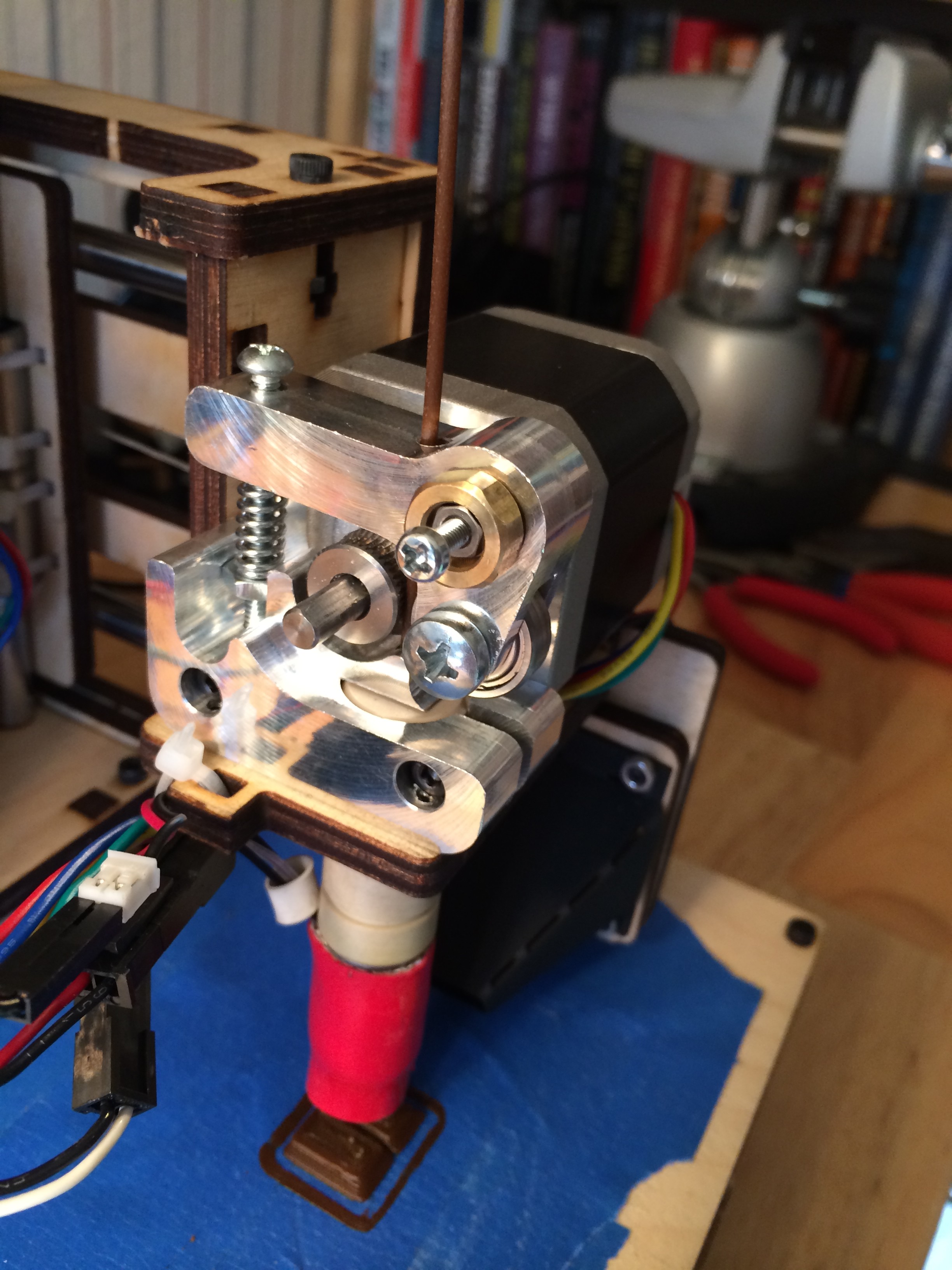 Nice, I happened to see it in use at the Printrbot table at the 3D Printer expo over the weekend. I wonder if it’ll act like a heat sink and I’d no longer need a fan blowing on the extruder. I was having jams from the motor running a bit hot and softening the filament.