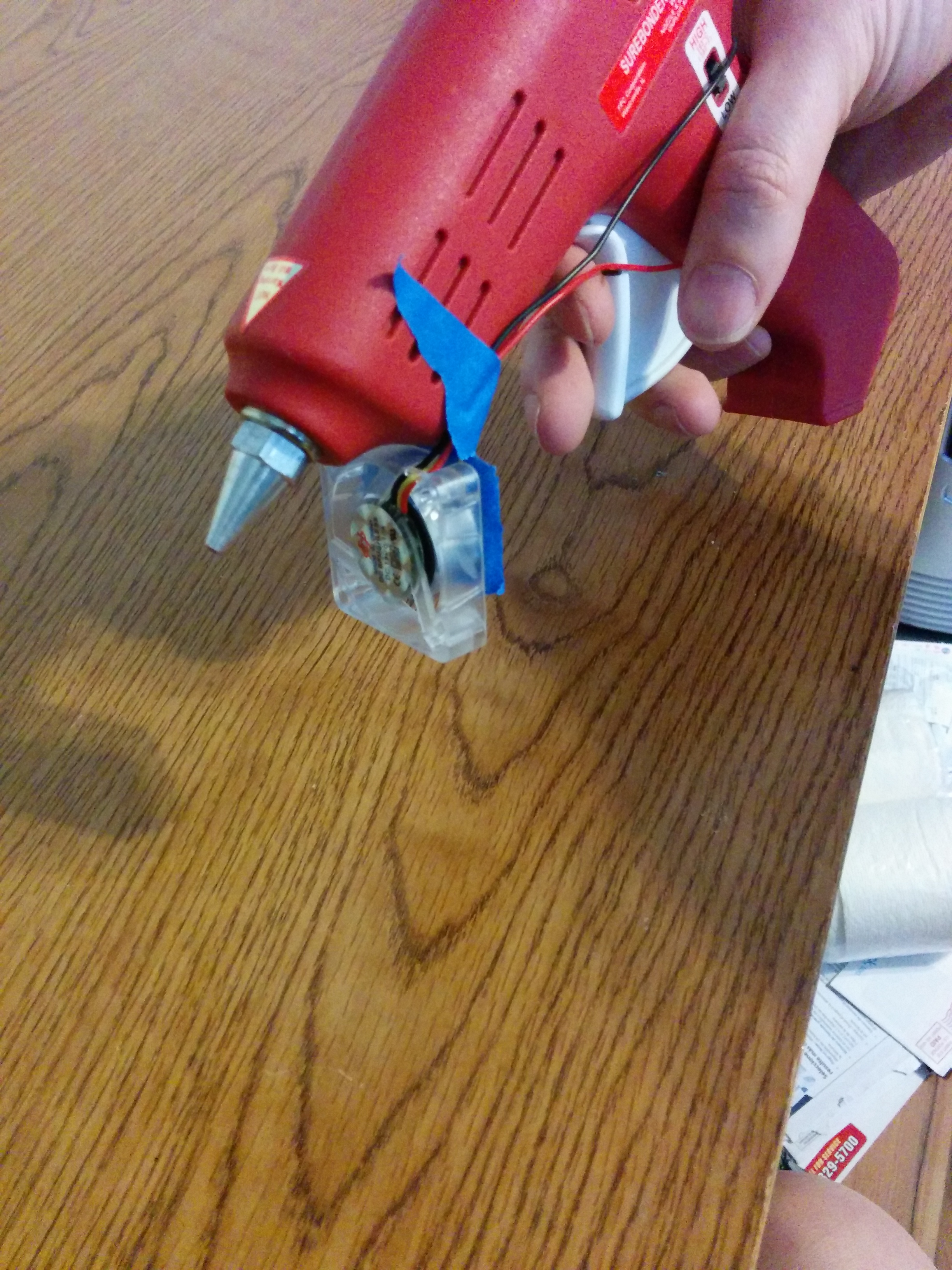 Prototype for poor man’s 3d printer pen. Unlike other more expensive alternatives, has variable extrusion flow control (not just one speed) through use of manual extrusion control mechanism (the trigger thingy).