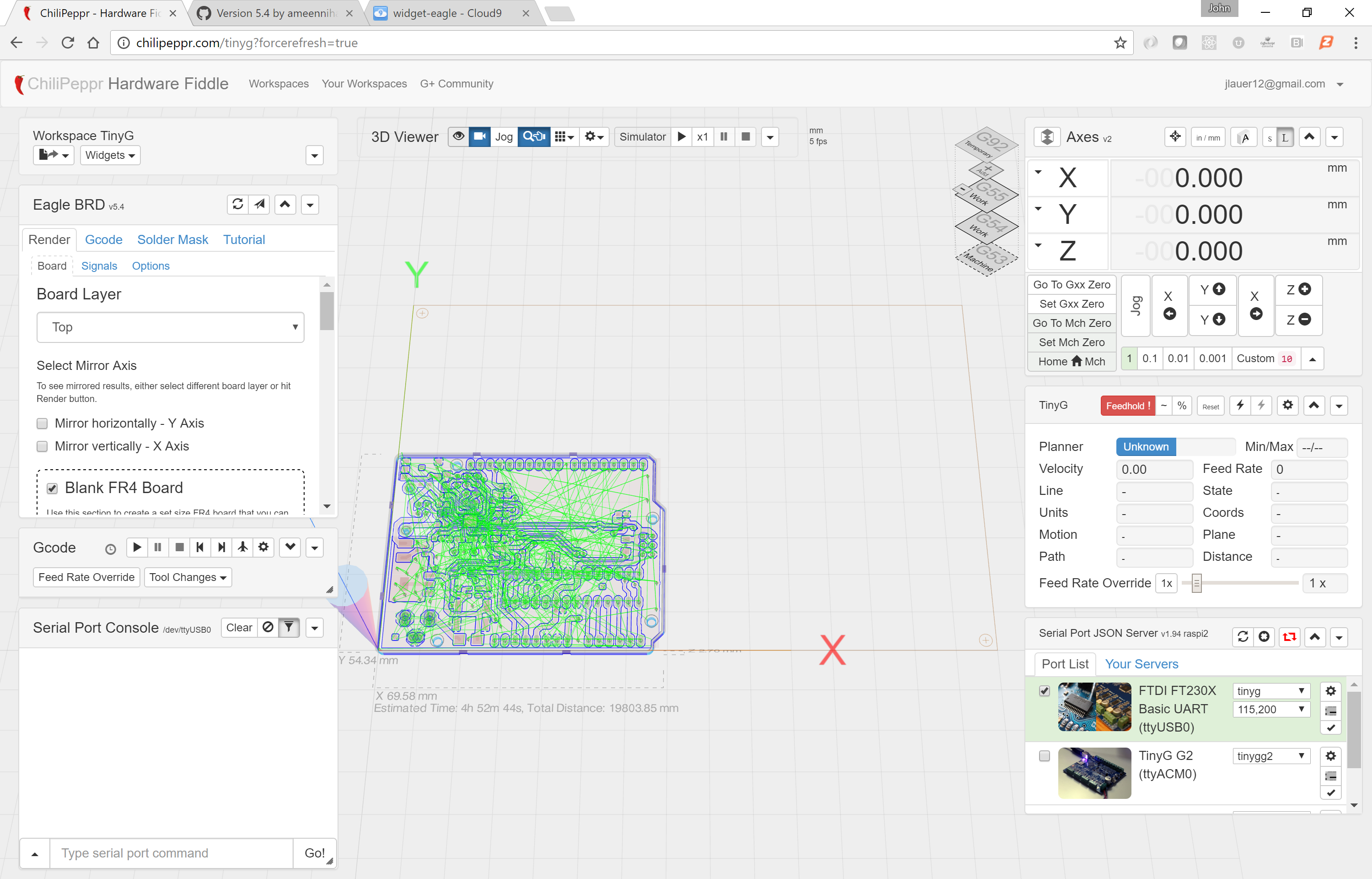 Published @ameen.nihad 's version 5.4 of Eagle BRD widget. Ameen has added an incredible amount of features with the most notable recent one your ability to mill registration holes on a set size FR4 board as seen in screenshot. This lets you flip your board accurately to mill the bottom layer.