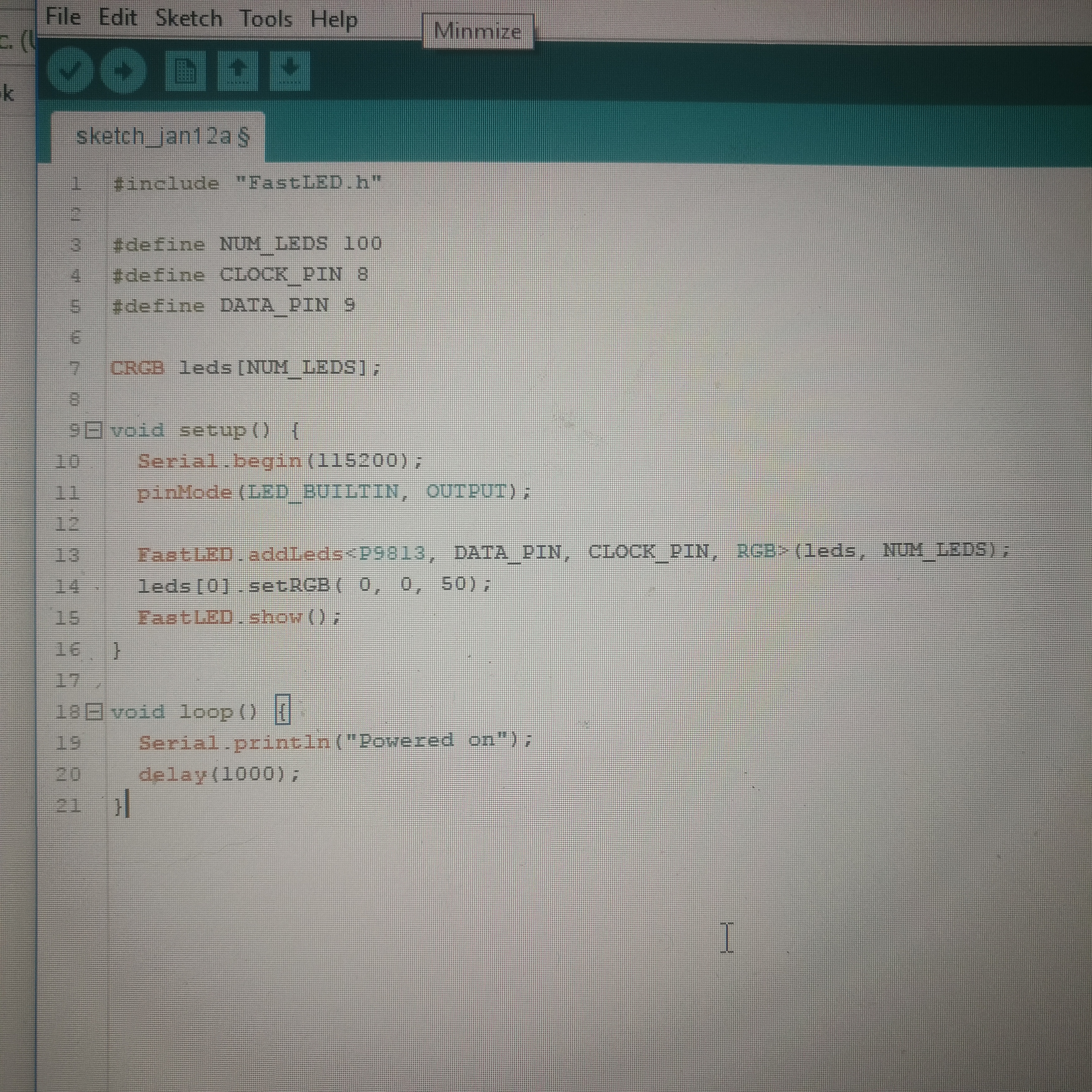 So I purchased a 2560 Mega and have the same issue I’m using a P9813 RGB controller and the shortest piece of code to test with. The Mega being powered over USB and the P9813 powered from a mains 12v adaptor.
