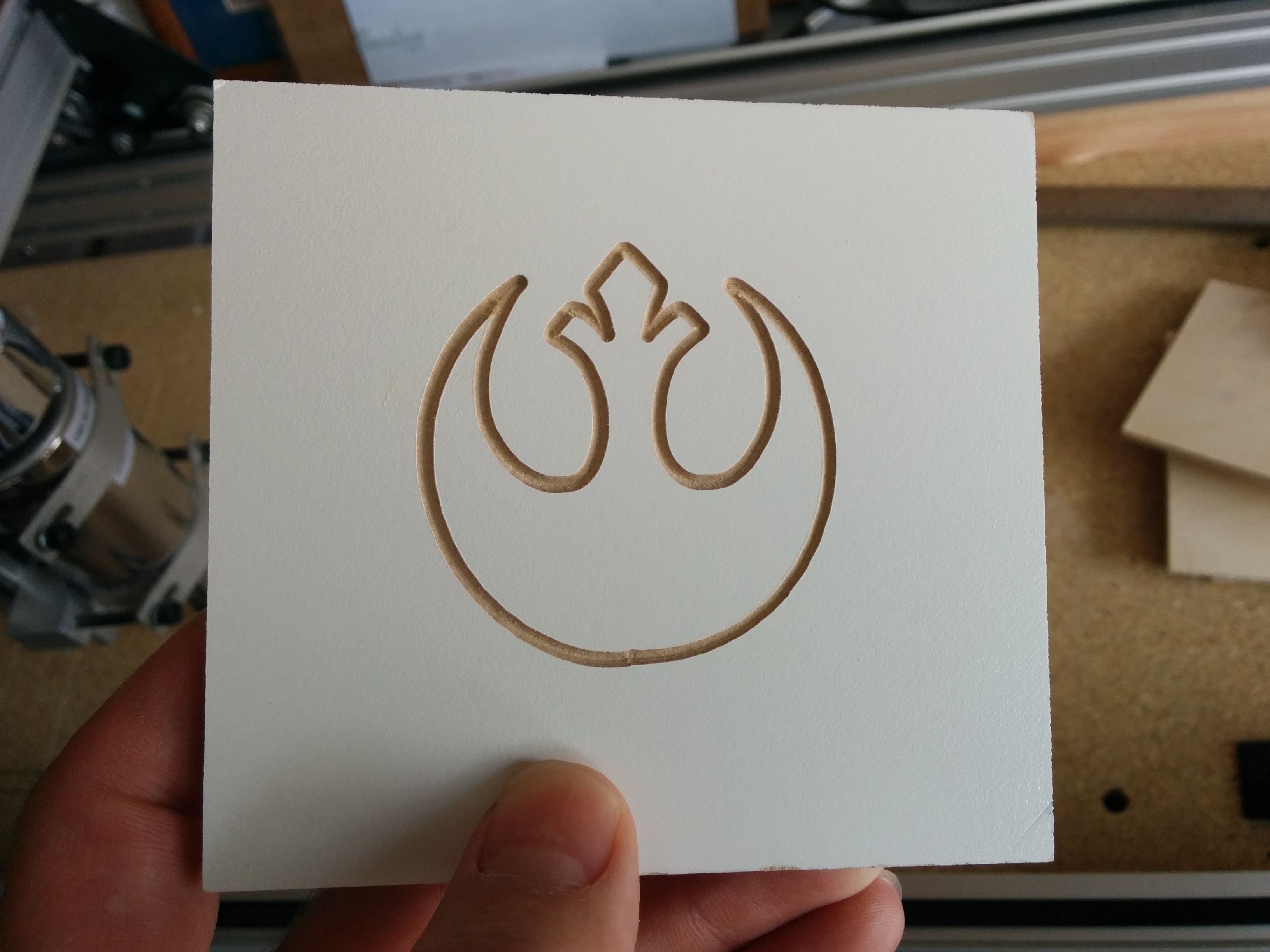 @Brad_Dudenhoffer This was a simple Google search for a logo, then opened up inside of Inkscape. Trace the Bitmap, object to path, save as DXF. Then I used F-engrave for this one.