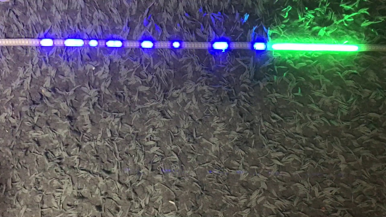 I would like to blend the blue random pixel drop through green pixels at the end of the strip(I should be able to see the blue pixels drop right till the end of the strip).