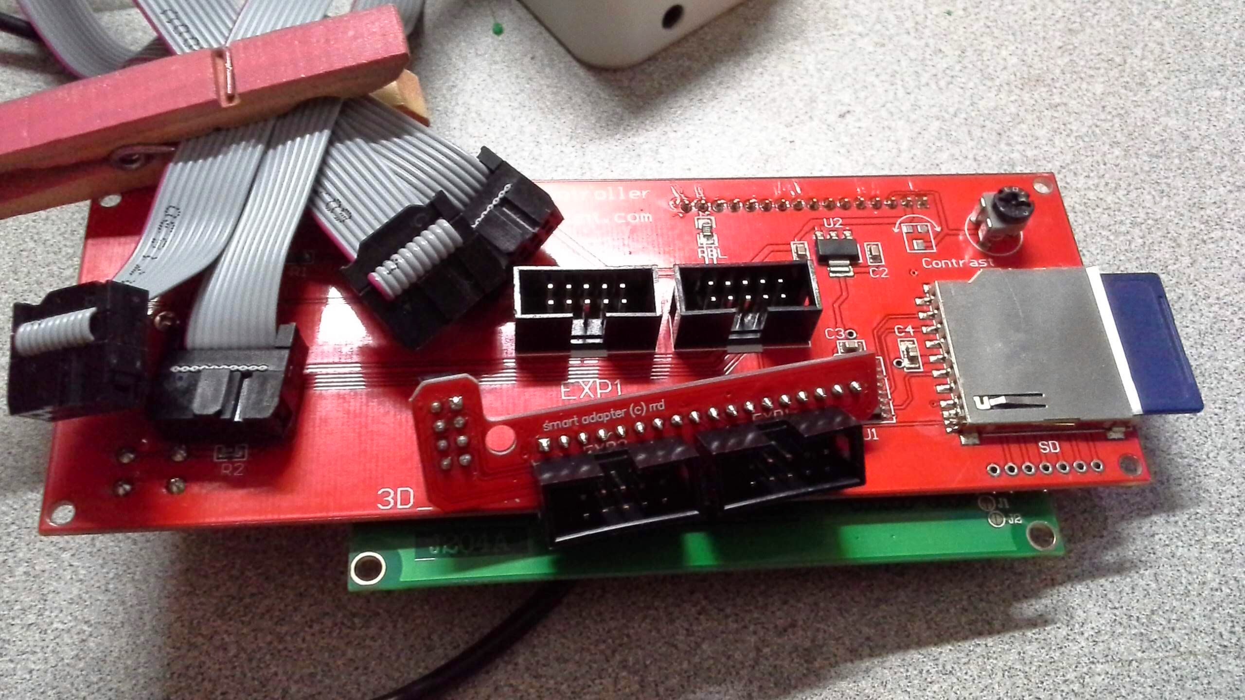 I have had some gruesome experiences with cheap lcd boards, in fact, I never got it to work properly without a lot of work. Every time I want to use a new firmware, it’s an uphill struggle to get it to work. I ended up not using the smrt adapter, and using different pins from the ramps board.And because of the altered pin-configuration, I had to reprogram the firmware. Tricky at best. But start of with using a buzzer, to see how the thing is wired. The schematics are online on several places. Google it. Look for reprap smart display . or go to :