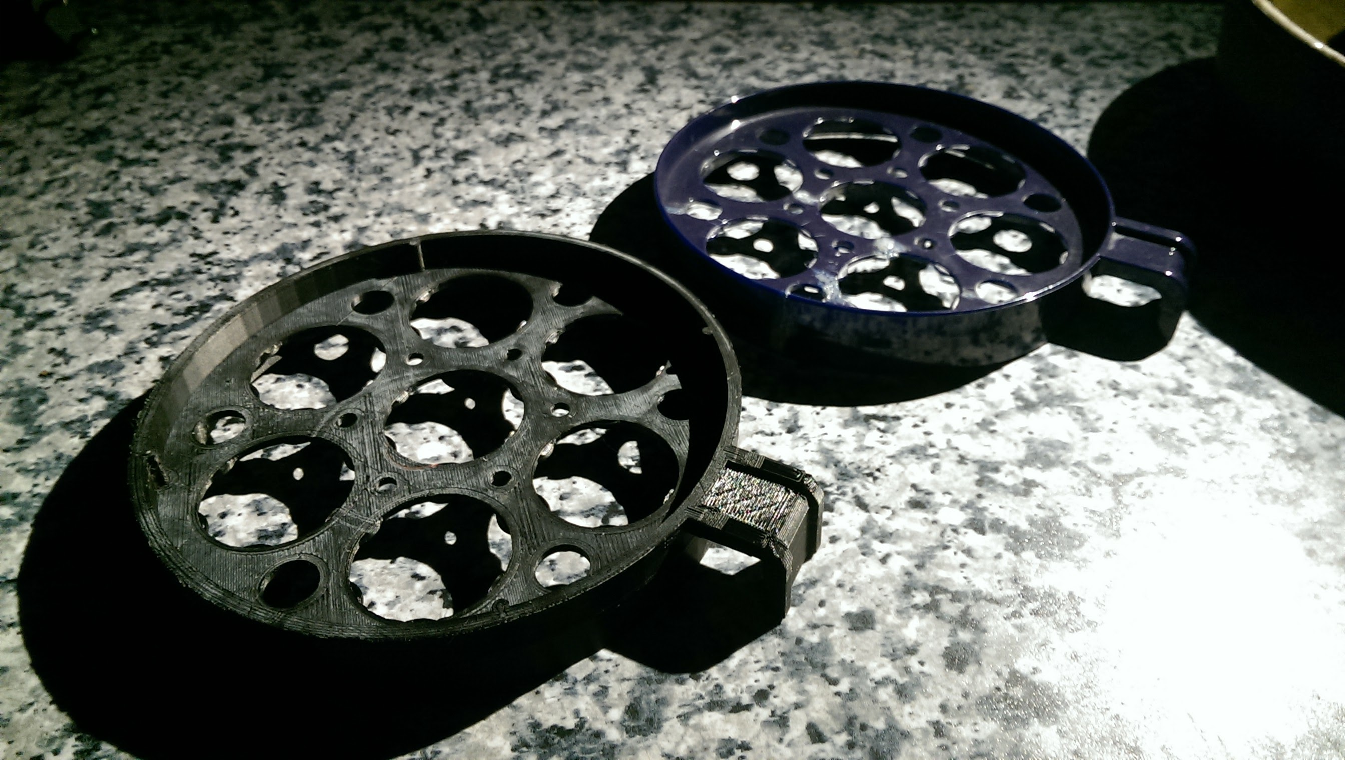 Recreated and printed the insert for an old egg boiler for a colleauge. To avoid printing too much support material I splitted it into a top and bottom part which click together. Print time for both parts about 2h30, black ABS at 240°, 0.25mm layer, 80mm/sec speed