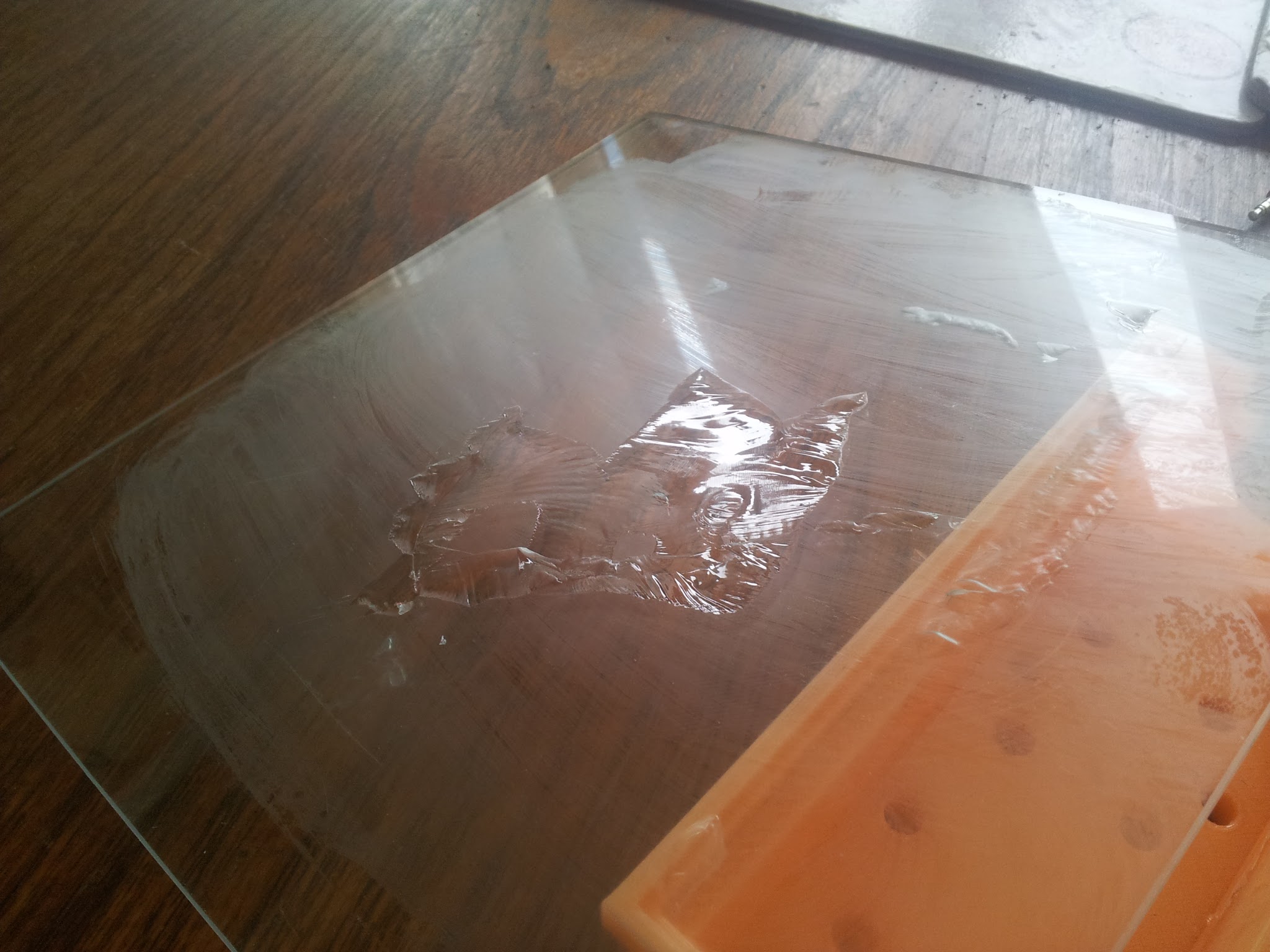 strange…i think my dilution is mostly between 1:5 and 1:10 and it looks much more milky than yours, yours is nearly transparent…i just take some drips water and put 2-3 drips pva in and put it with a brush on the heated bed…but without the knife i think some parts would have broken when trying to get them off…or perhaps the glass