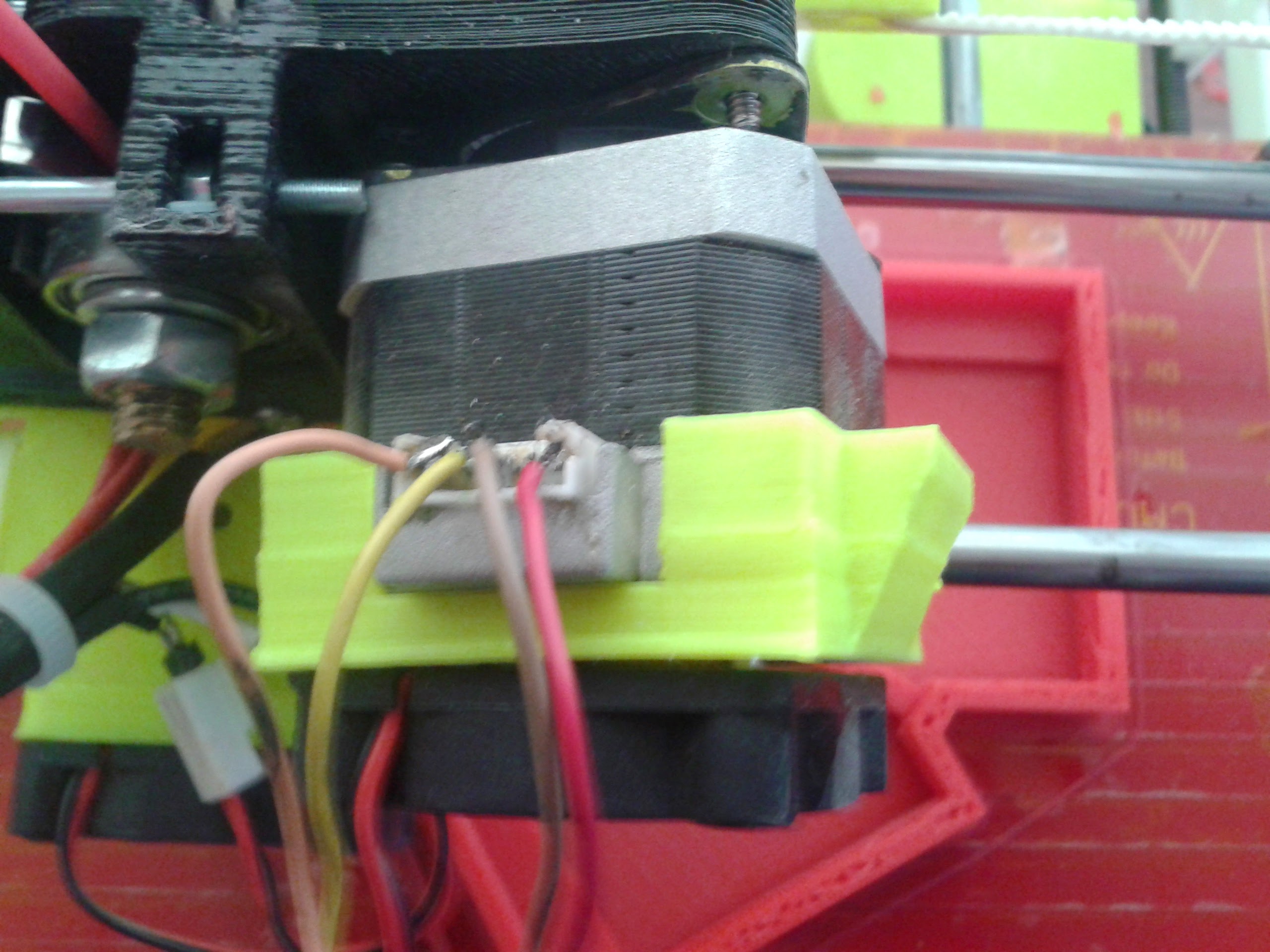 If you’re going to solder directly to the connector on the motor like that (not recommended, but there’s no going back now), you should fill in the space with hot glue to keep the wires in place and prevent short circuits. You should also bundle and zip-tie the wires down somewhere on the extruder body so they don’t move around and flex near the solder points when it moves.