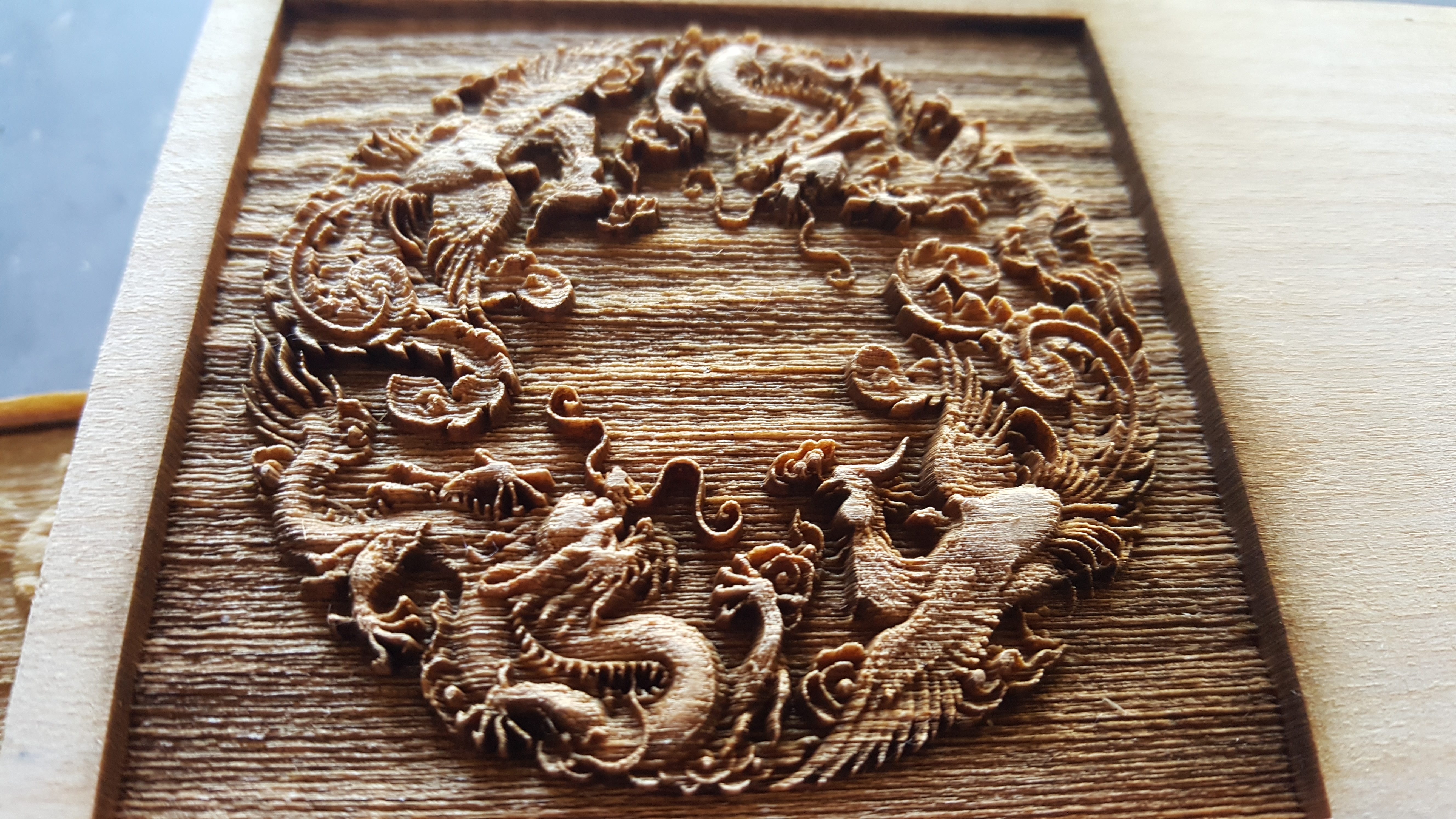 Love the dragons & phoenixes. Looks great. What’s the rough depth on engrave on something like this?