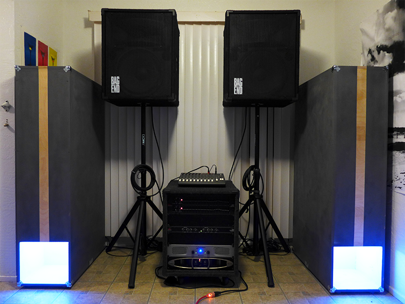 Custom built subwoofers with integrated audio-reactive, RGB LEDs