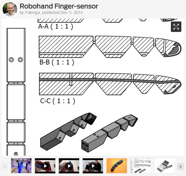 Got inspiration from all the different #3Dprinted prosthetic hands and was thinking my #conductive #TPU #rubberlike filament could add a dimension or two… This #dualstrusion will create the finished finger with joints and a force sensitive fingertip. The fingertip has a outer shell that, when pressed, will connect to the inner conductive surface, thus creating a closed circuit. check it out here: Robohand Finger-sensor by Palmiga - Thingiverse